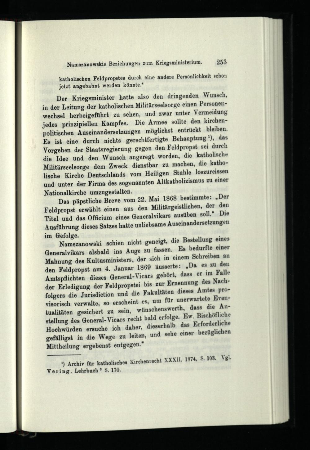 Siebentes Kapitel. Der Fall Namszanowski und die Aufhebung der katholischen Feldpropstei.