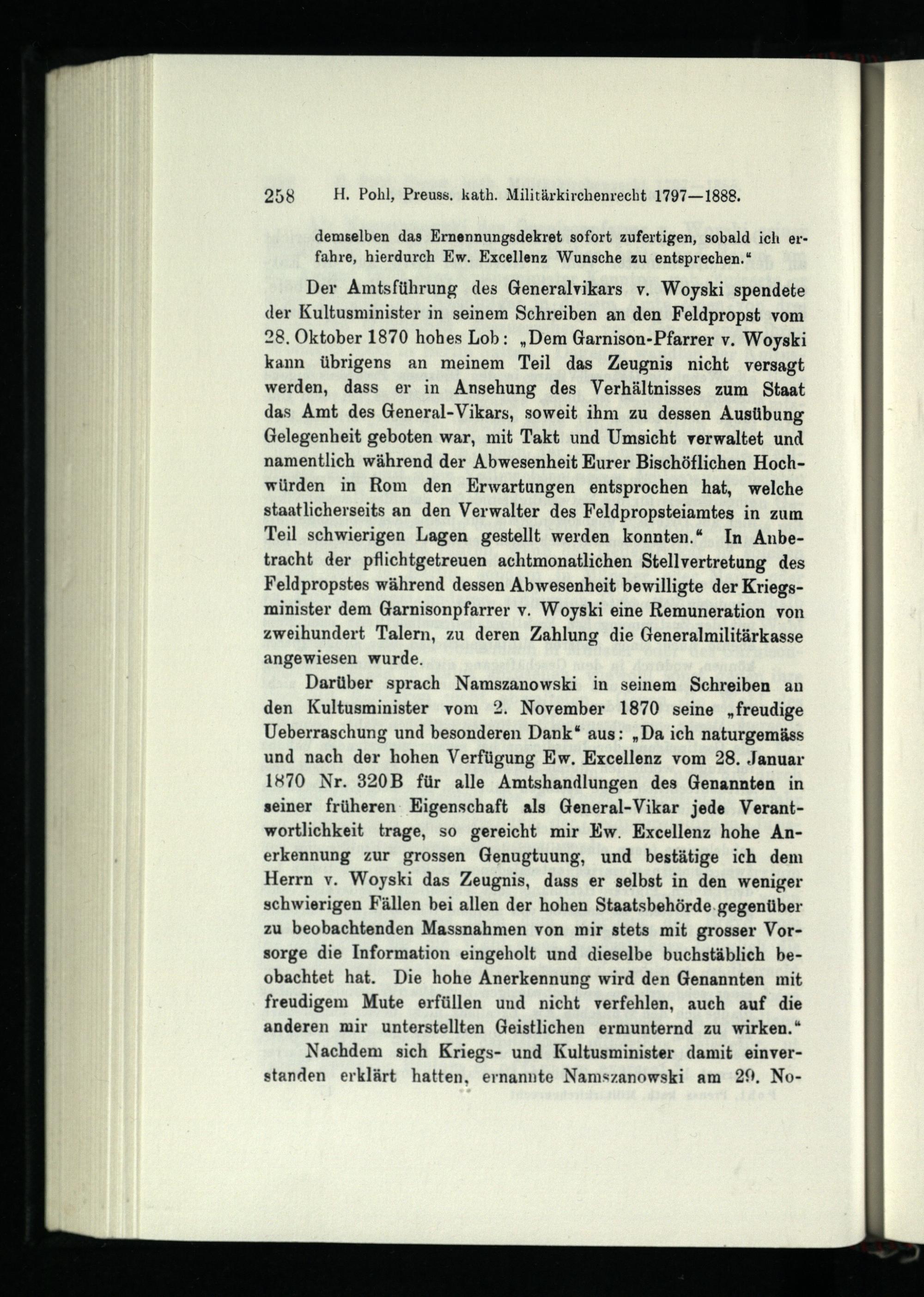 Siebentes Kapitel. Der Fall Namszanowski und die Aufhebung der katholischen Feldpropstei.