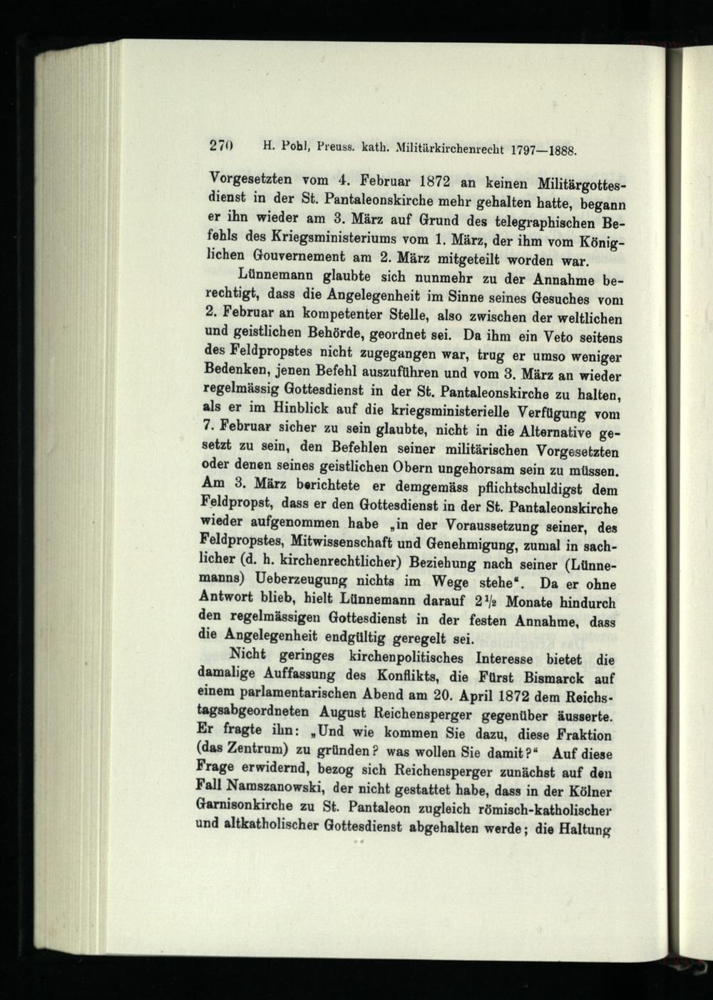 Die katholische Militärseelsorge Preußens : 1797 - 1888 ; Studien zur Geschichte des deutschen Militärkirchenrechts / von Heinrich Pohl