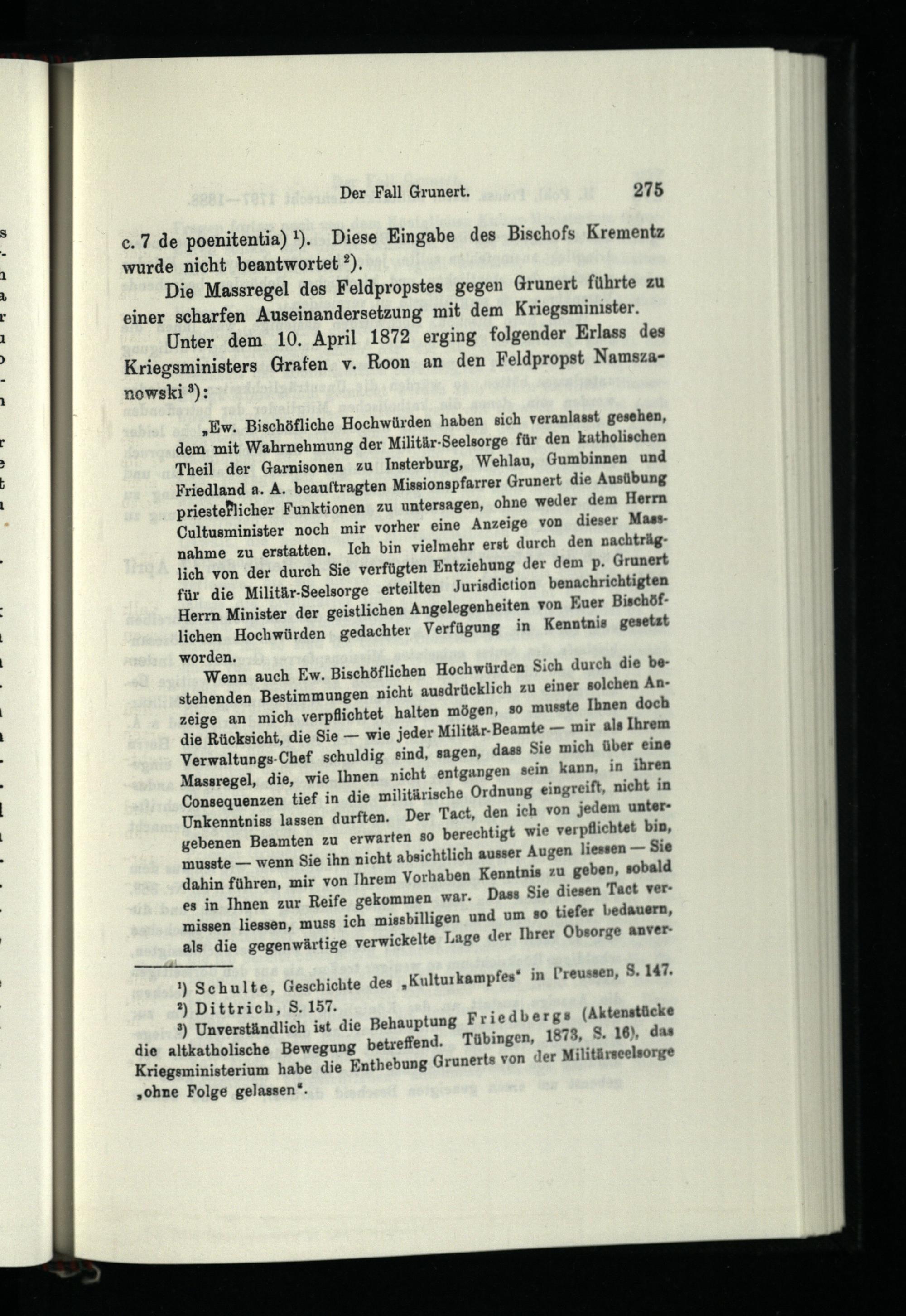 Achtes Kapitel. Die katholische Militärseelsorge in den Jahren 1873 - 1888 und die Wiederbesetzung der Stelle eines katholischen Feldpropstes.