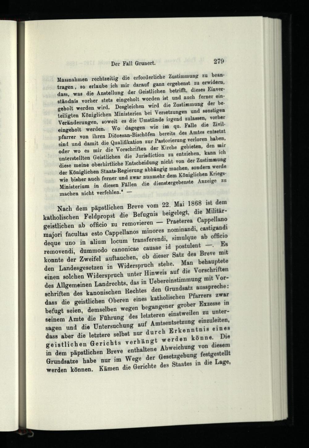 Achtes Kapitel. Die katholische Militärseelsorge in den Jahren 1873 - 1888 und die Wiederbesetzung der Stelle eines katholischen Feldpropstes.