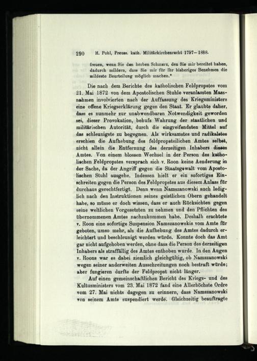Siebentes Kapitel. Der Fall Namszanowski und die Aufhebung der katholischen Feldpropstei.