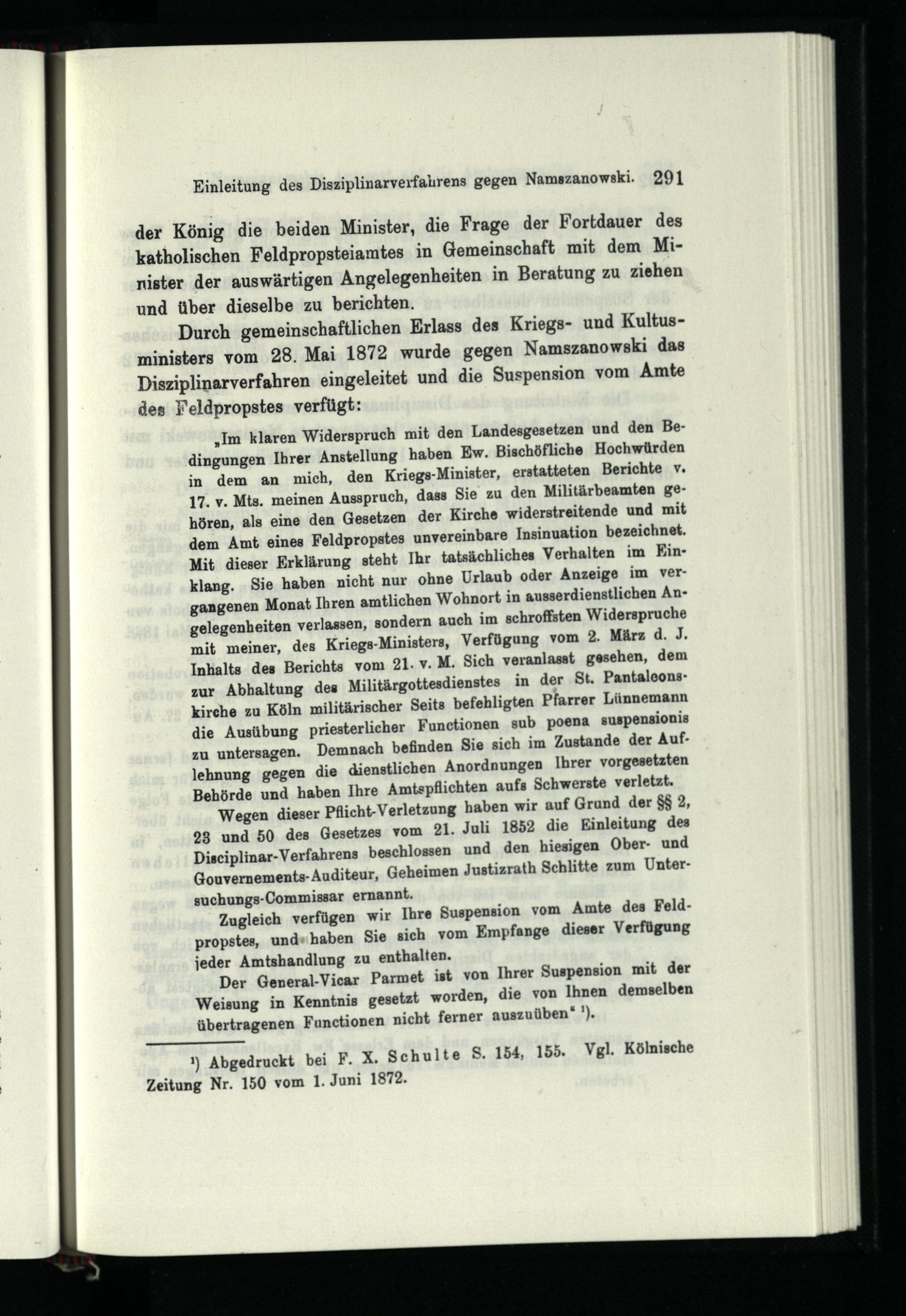 Siebentes Kapitel. Der Fall Namszanowski und die Aufhebung der katholischen Feldpropstei.