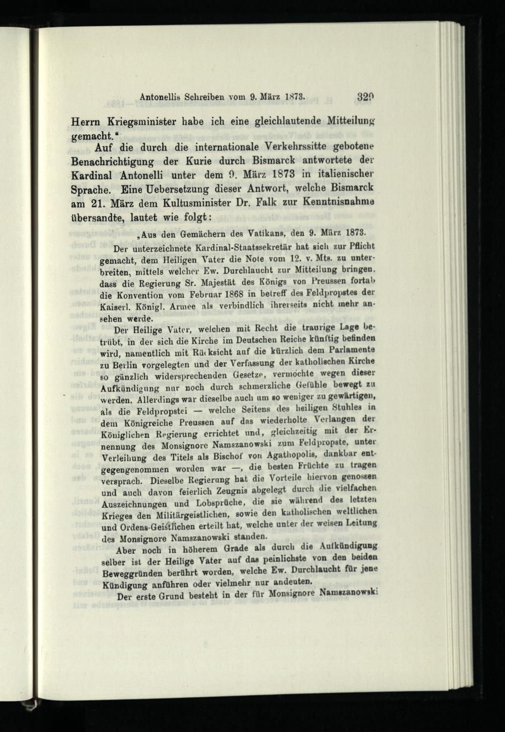 Achtes Kapitel. Die katholische Militärseelsorge in den Jahren 1873 - 1888 und die Wiederbesetzung der Stelle eines katholischen Feldpropstes.