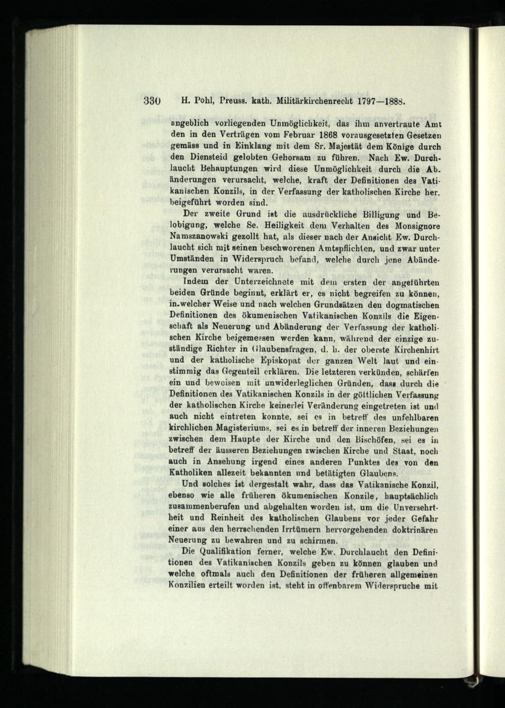 Die katholische Militärseelsorge Preußens : 1797 - 1888 ; Studien zur Geschichte des deutschen Militärkirchenrechts / von Heinrich Pohl