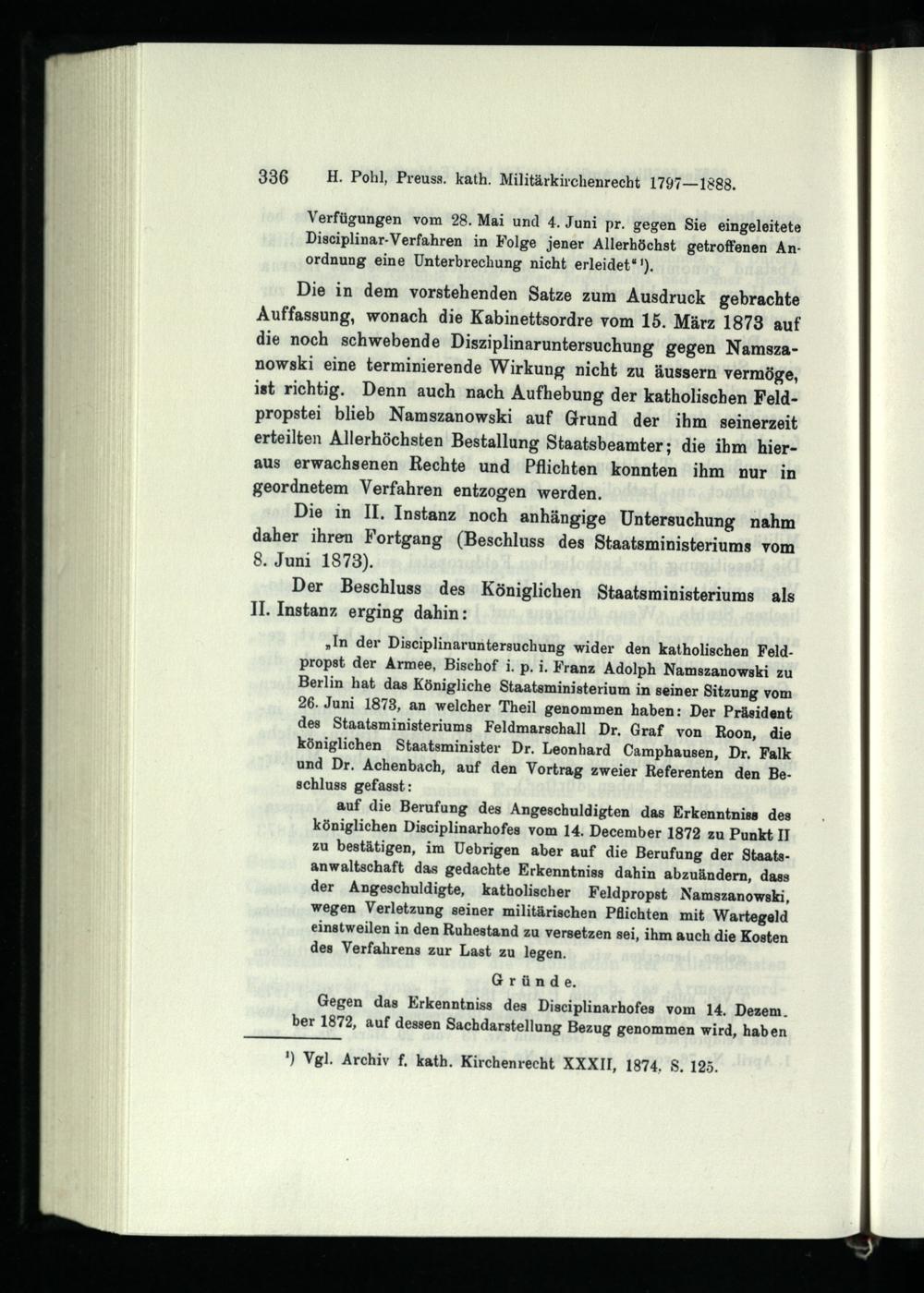 Siebentes Kapitel. Der Fall Namszanowski und die Aufhebung der katholischen Feldpropstei.
