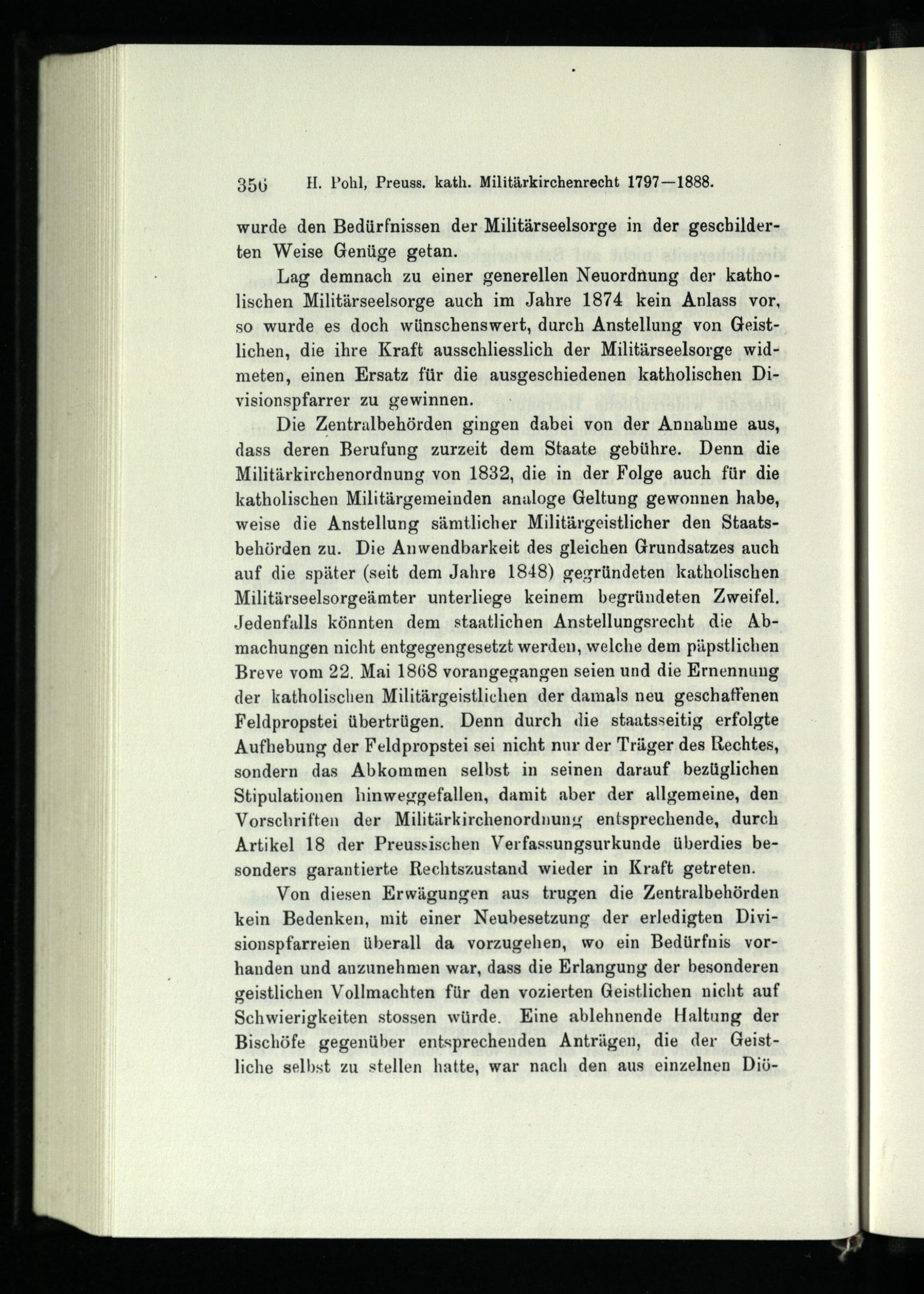 Die katholische Militärseelsorge Preußens : 1797 - 1888 ; Studien zur Geschichte des deutschen Militärkirchenrechts / von Heinrich Pohl