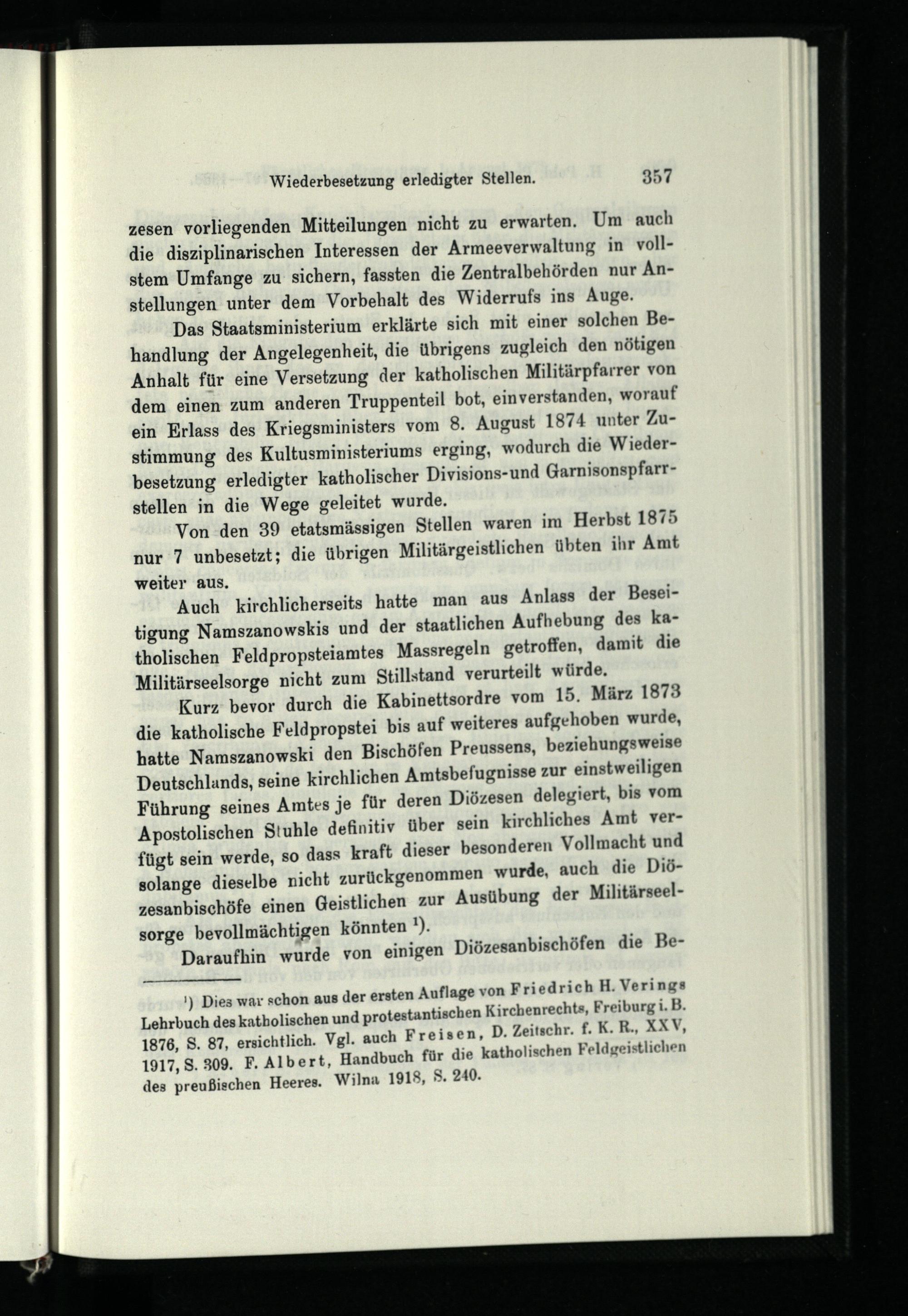 Achtes Kapitel. Die katholische Militärseelsorge in den Jahren 1873 - 1888 und die Wiederbesetzung der Stelle eines katholischen Feldpropstes.