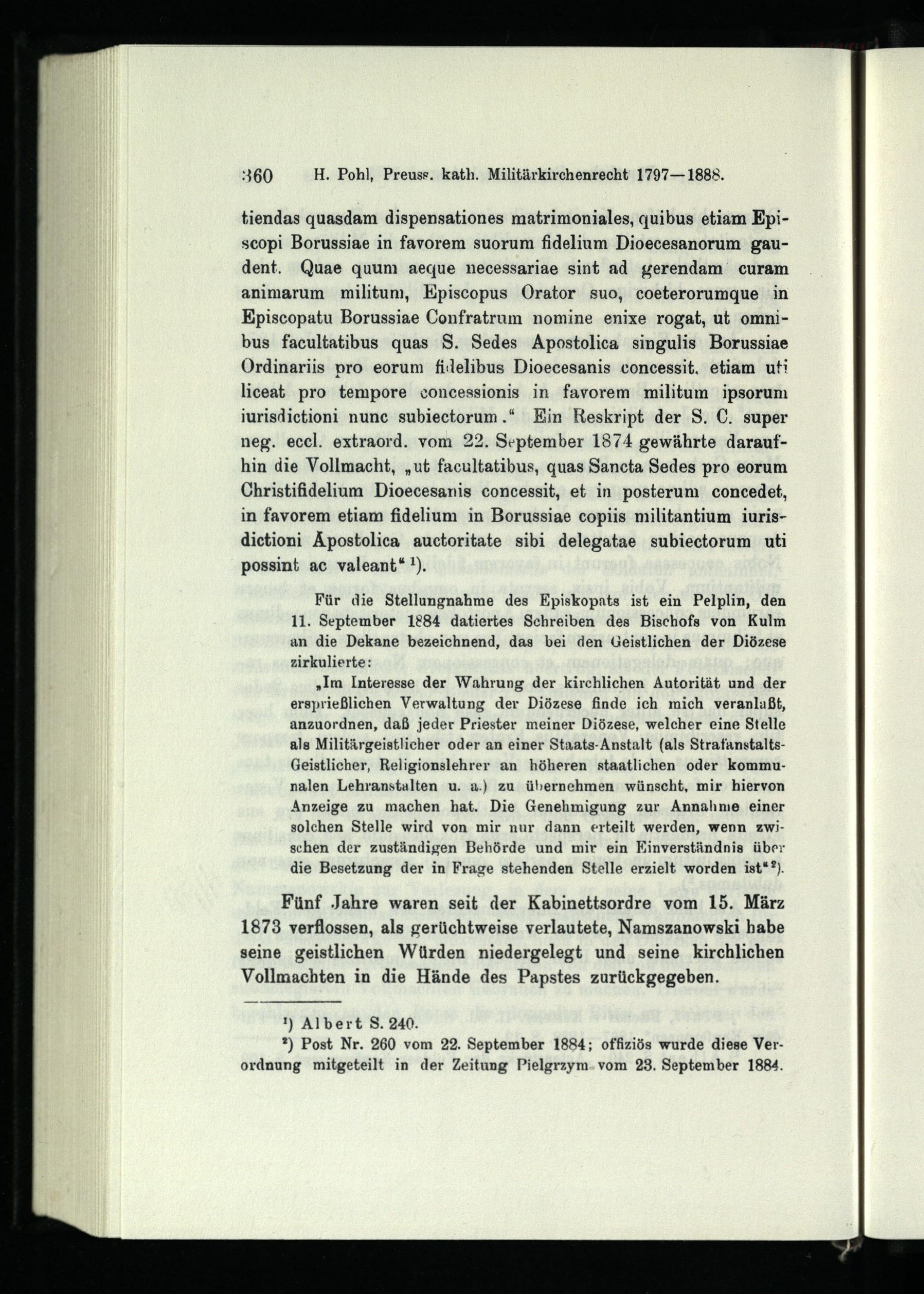 Achtes Kapitel. Die katholische Militärseelsorge in den Jahren 1873 - 1888 und die Wiederbesetzung der Stelle eines katholischen Feldpropstes.