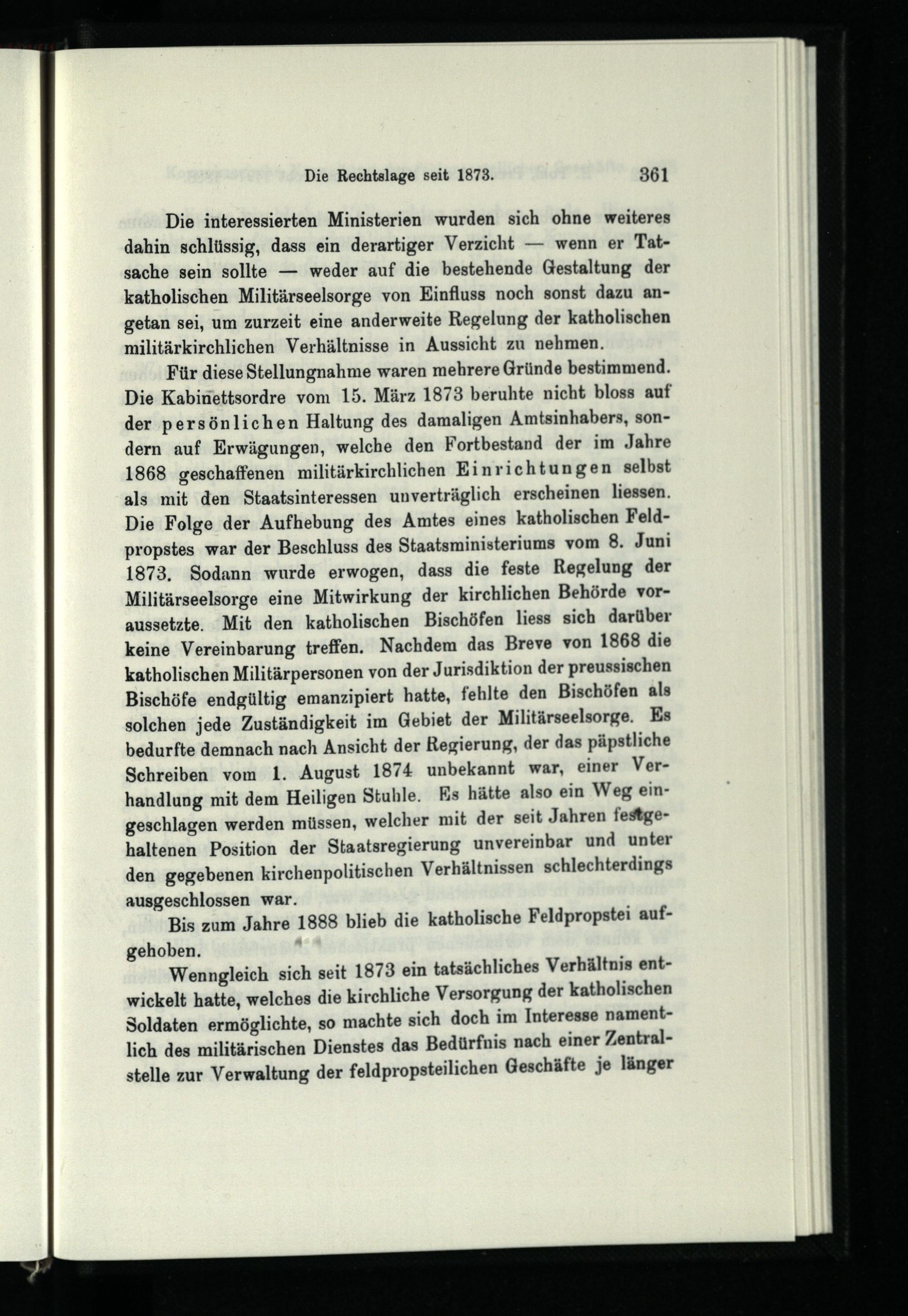 Achtes Kapitel. Die katholische Militärseelsorge in den Jahren 1873 - 1888 und die Wiederbesetzung der Stelle eines katholischen Feldpropstes.