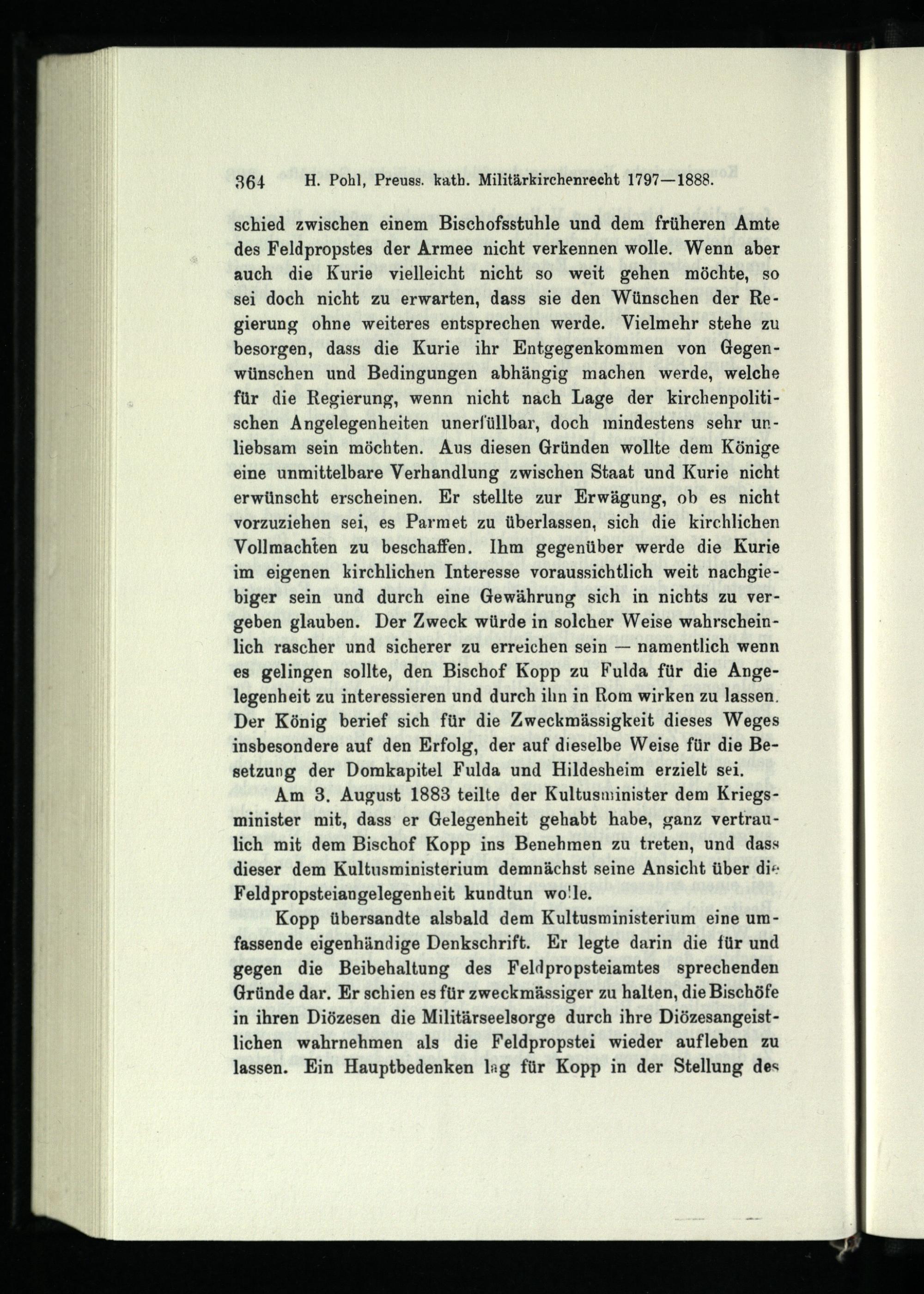 Achtes Kapitel. Die katholische Militärseelsorge in den Jahren 1873 - 1888 und die Wiederbesetzung der Stelle eines katholischen Feldpropstes.