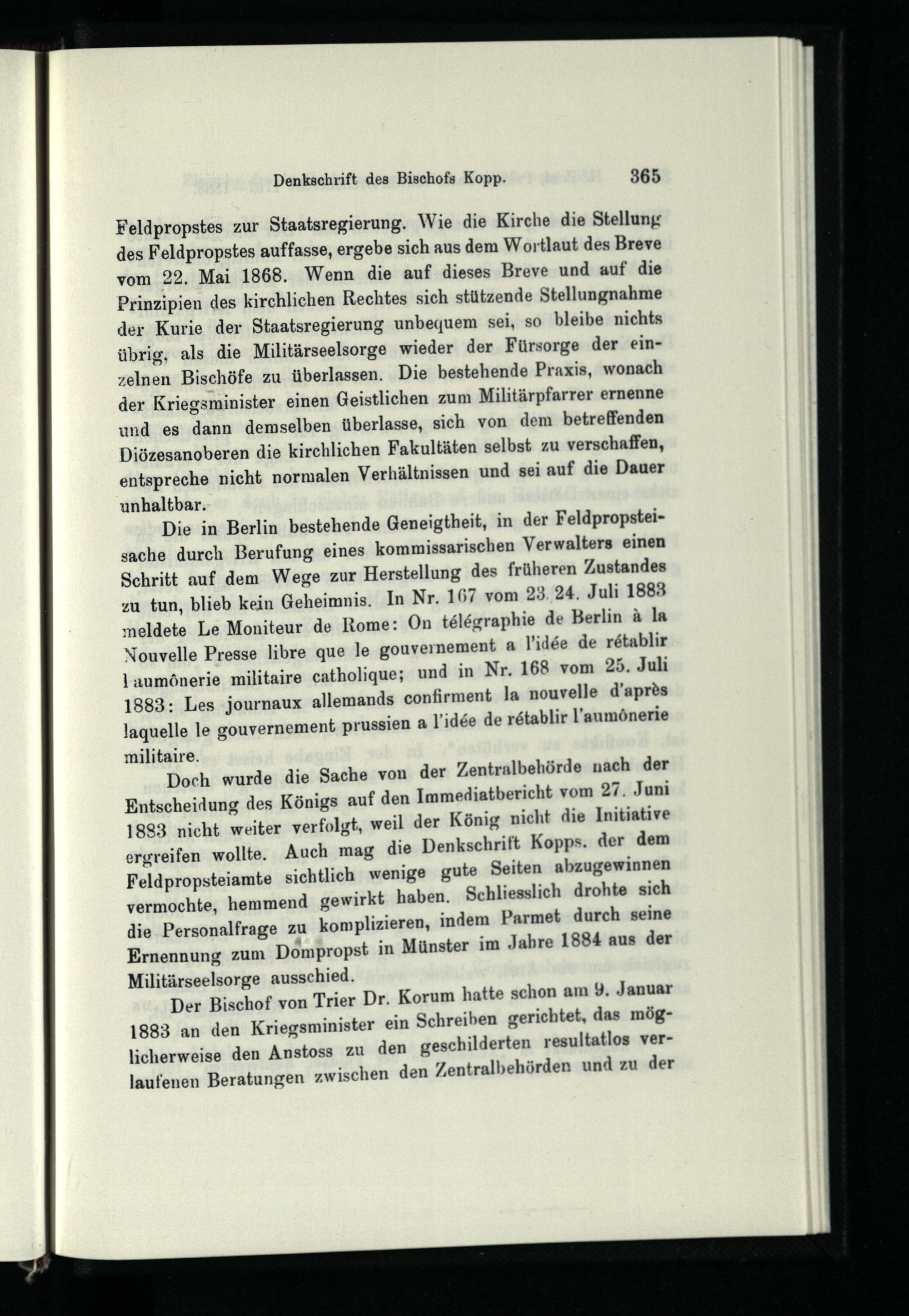 Achtes Kapitel. Die katholische Militärseelsorge in den Jahren 1873 - 1888 und die Wiederbesetzung der Stelle eines katholischen Feldpropstes.