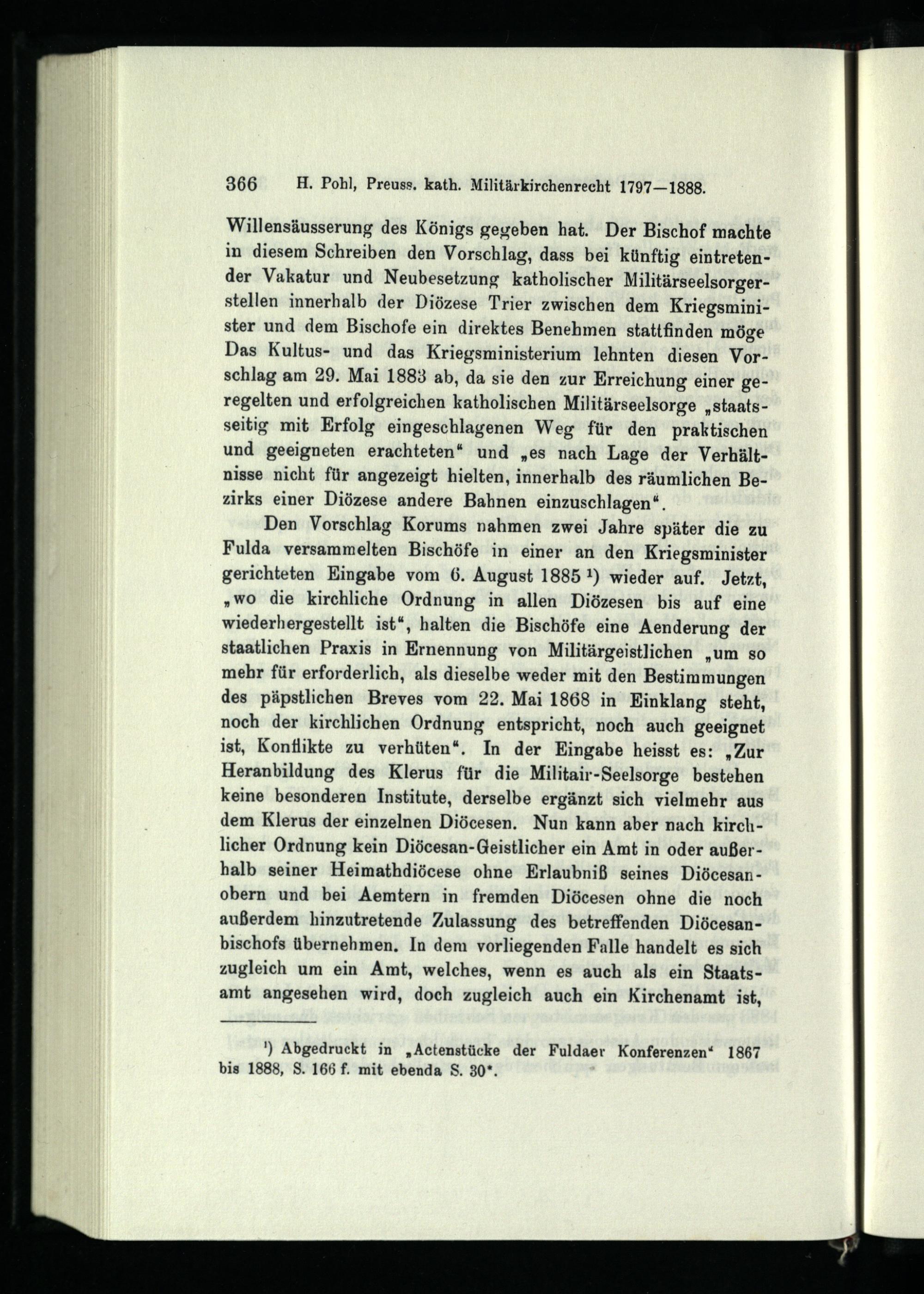 Achtes Kapitel. Die katholische Militärseelsorge in den Jahren 1873 - 1888 und die Wiederbesetzung der Stelle eines katholischen Feldpropstes.