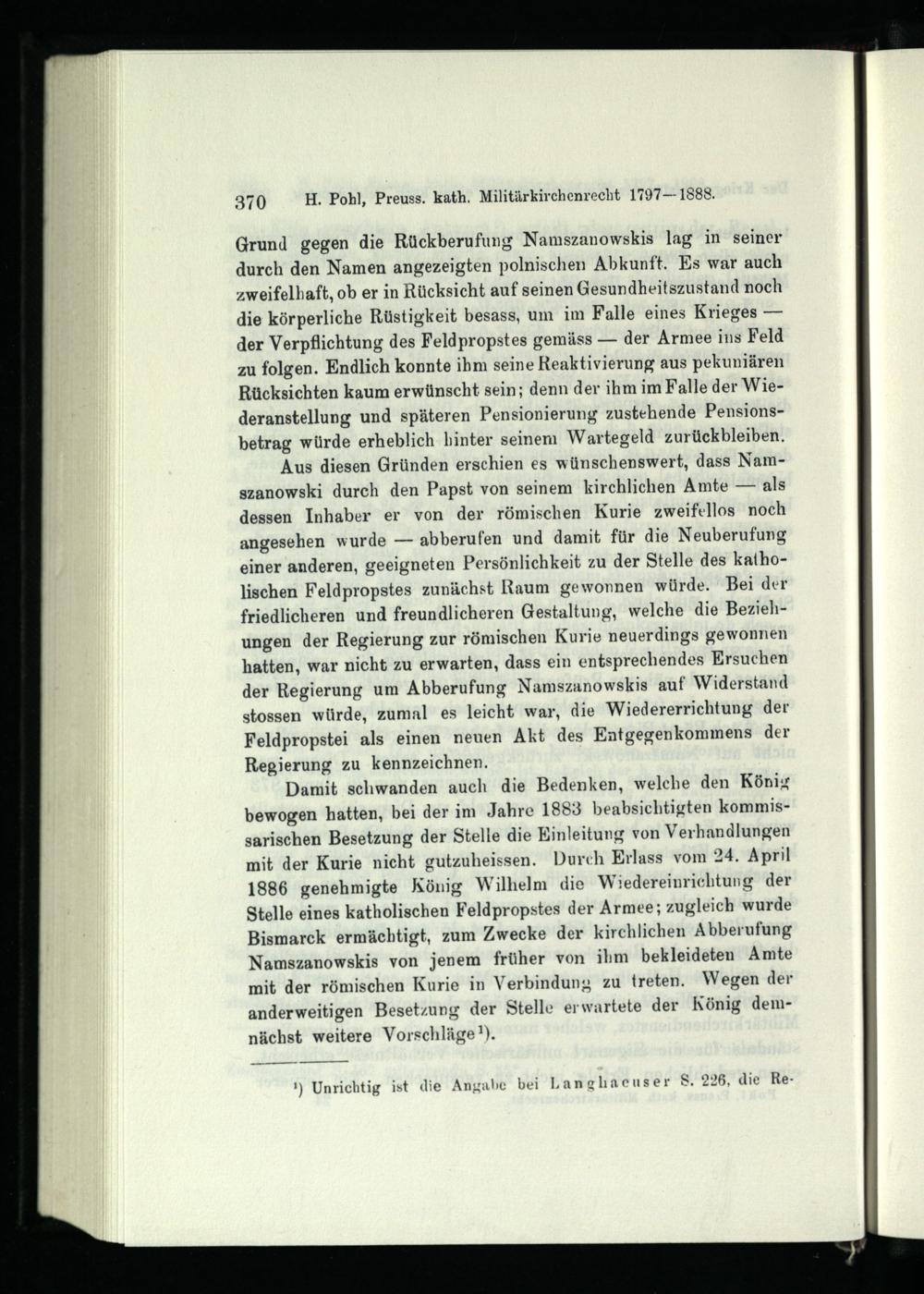 Siebentes Kapitel. Der Fall Namszanowski und die Aufhebung der katholischen Feldpropstei.