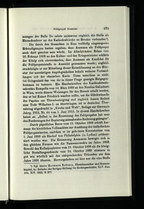 Achtes Kapitel. Die katholische Militärseelsorge in den Jahren 1873 - 1888 und die Wiederbesetzung der Stelle eines katholischen Feldpropstes.
