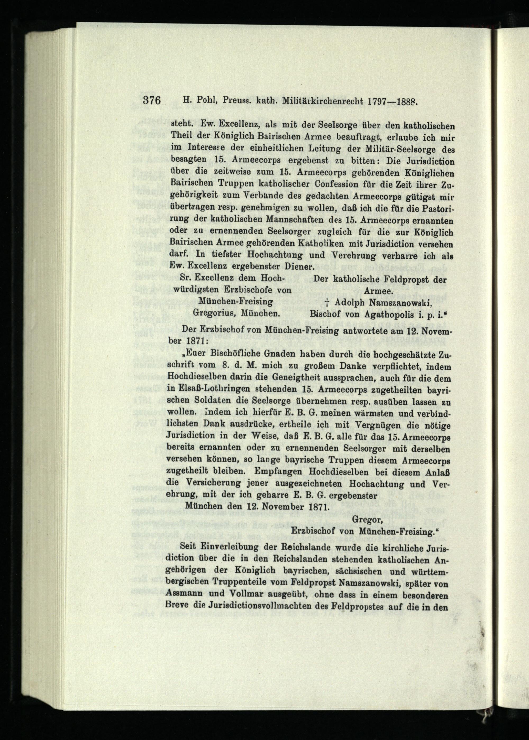 Die katholische Militärseelsorge Preußens : 1797 - 1888 ; Studien zur Geschichte des deutschen Militärkirchenrechts / von Heinrich Pohl