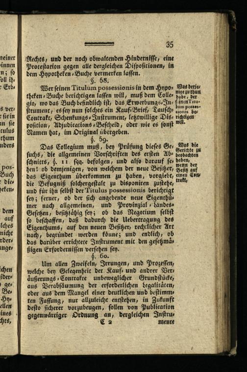 Zweyter Titel. Von Verwaltung des Hypotheken-Wesens und Führung der Bücher bey den Ober-Collegiis.