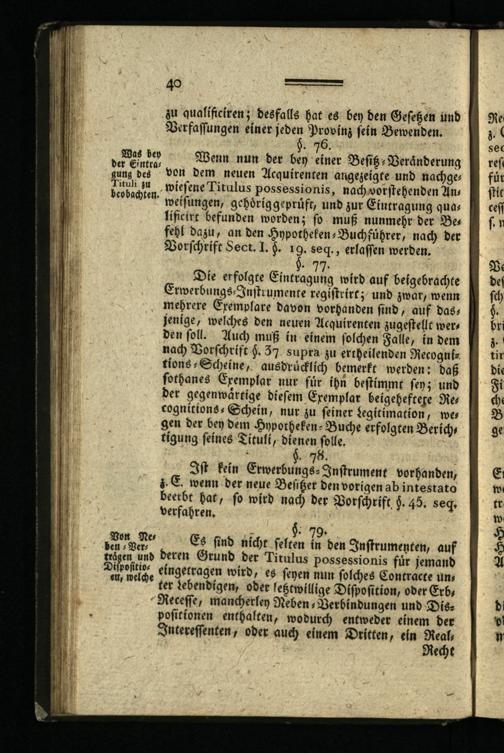 Zweyter Titel. Von Verwaltung des Hypotheken-Wesens und Führung der Bücher bey den Ober-Collegiis.
