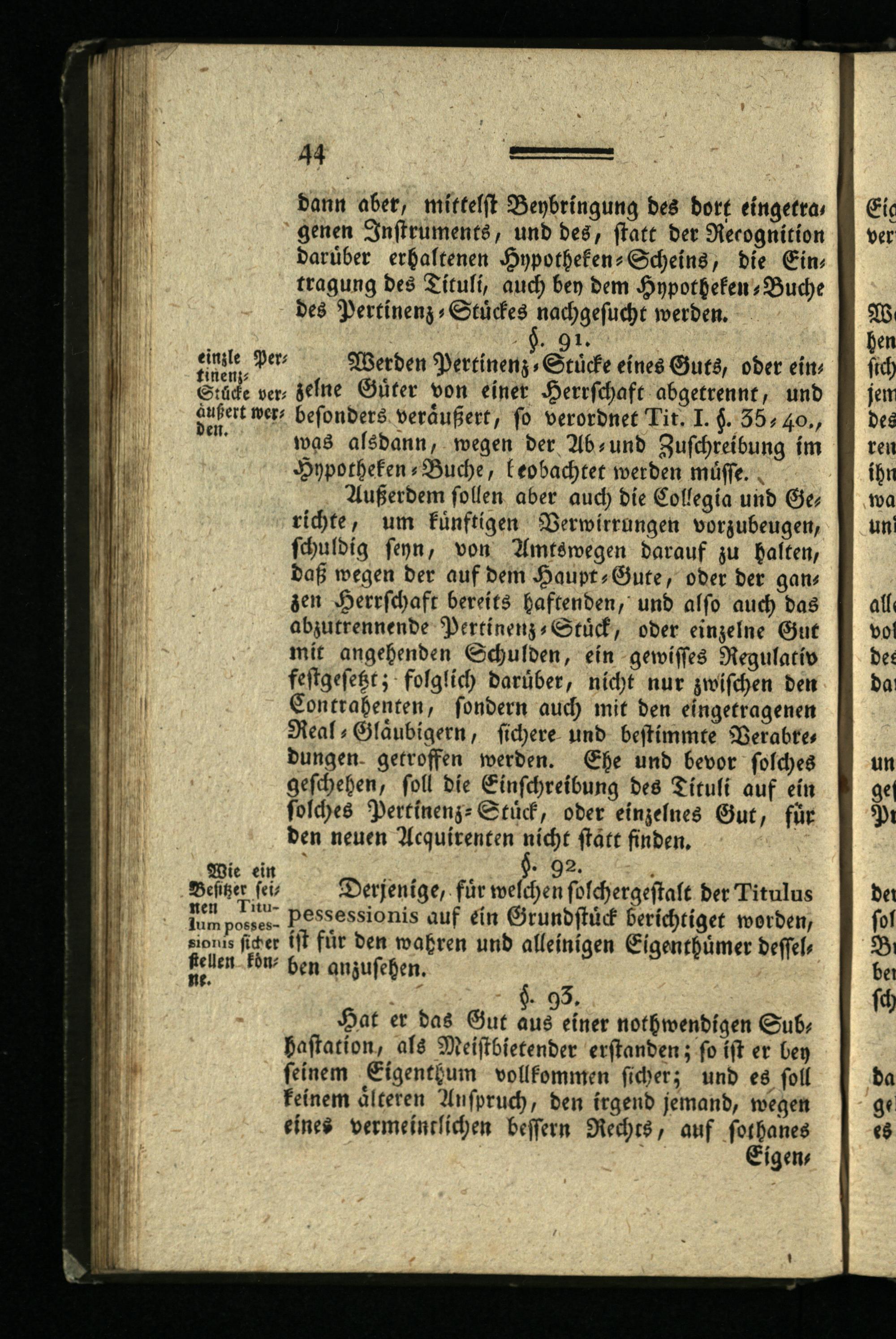 Zweyter Titel. Von Verwaltung des Hypotheken-Wesens und Führung der Bücher bey den Ober-Collegiis.