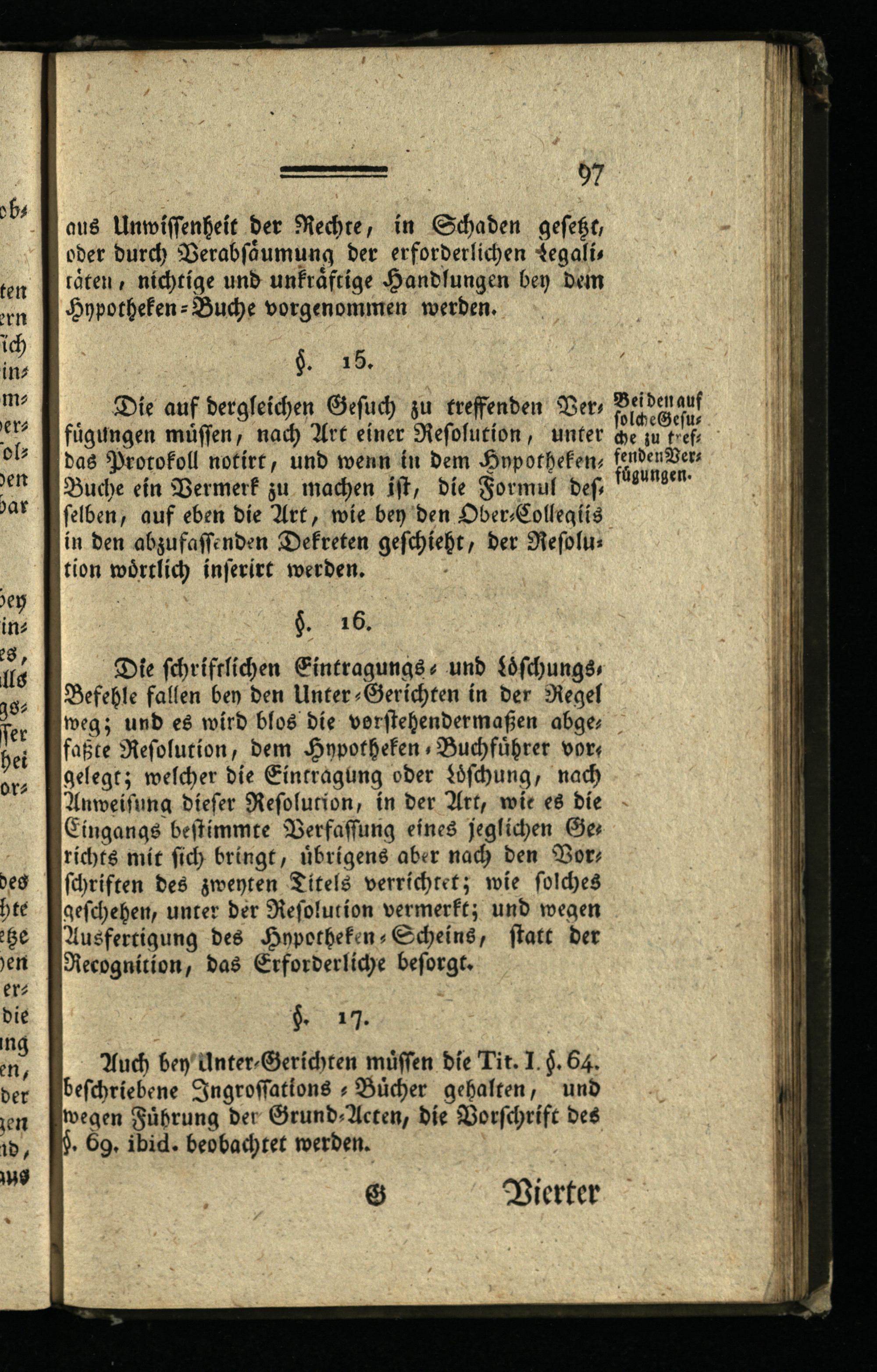 Zweyter Titel. Von Verwaltung des Hypotheken-Wesens und Führung der Bücher bey den Ober-Collegiis.