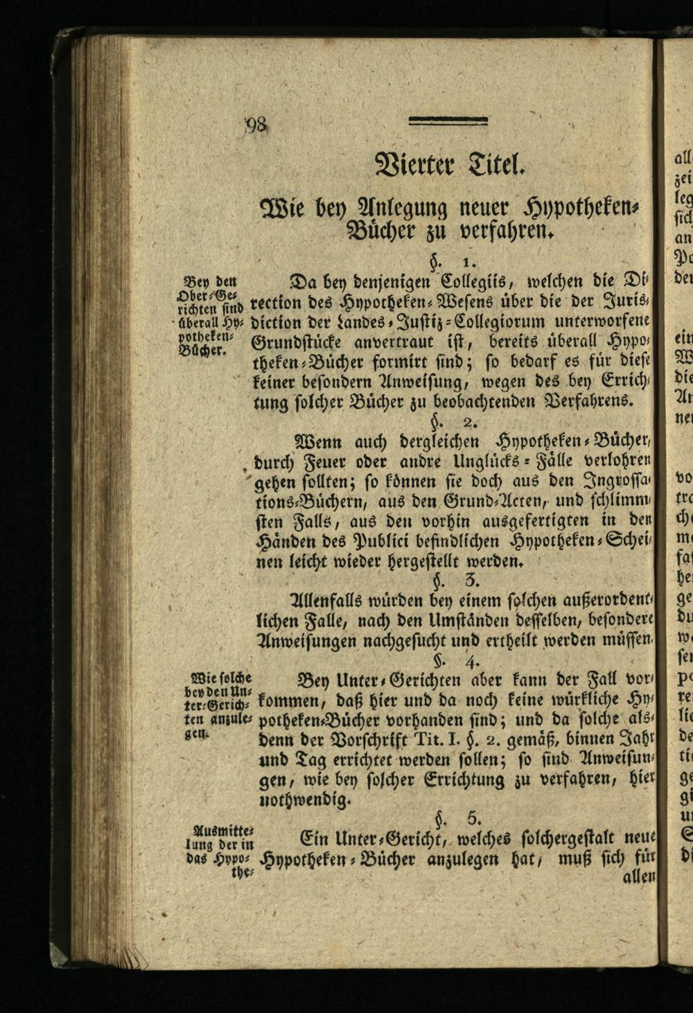 Viertel Titel. Wie bey Anlegung neuer Hypotheken-Bücher zu verfahren.