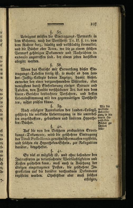Zweyter Titel. Von Verwaltung des Hypotheken-Wesens und Führung der Bücher bey den Ober-Collegiis.
