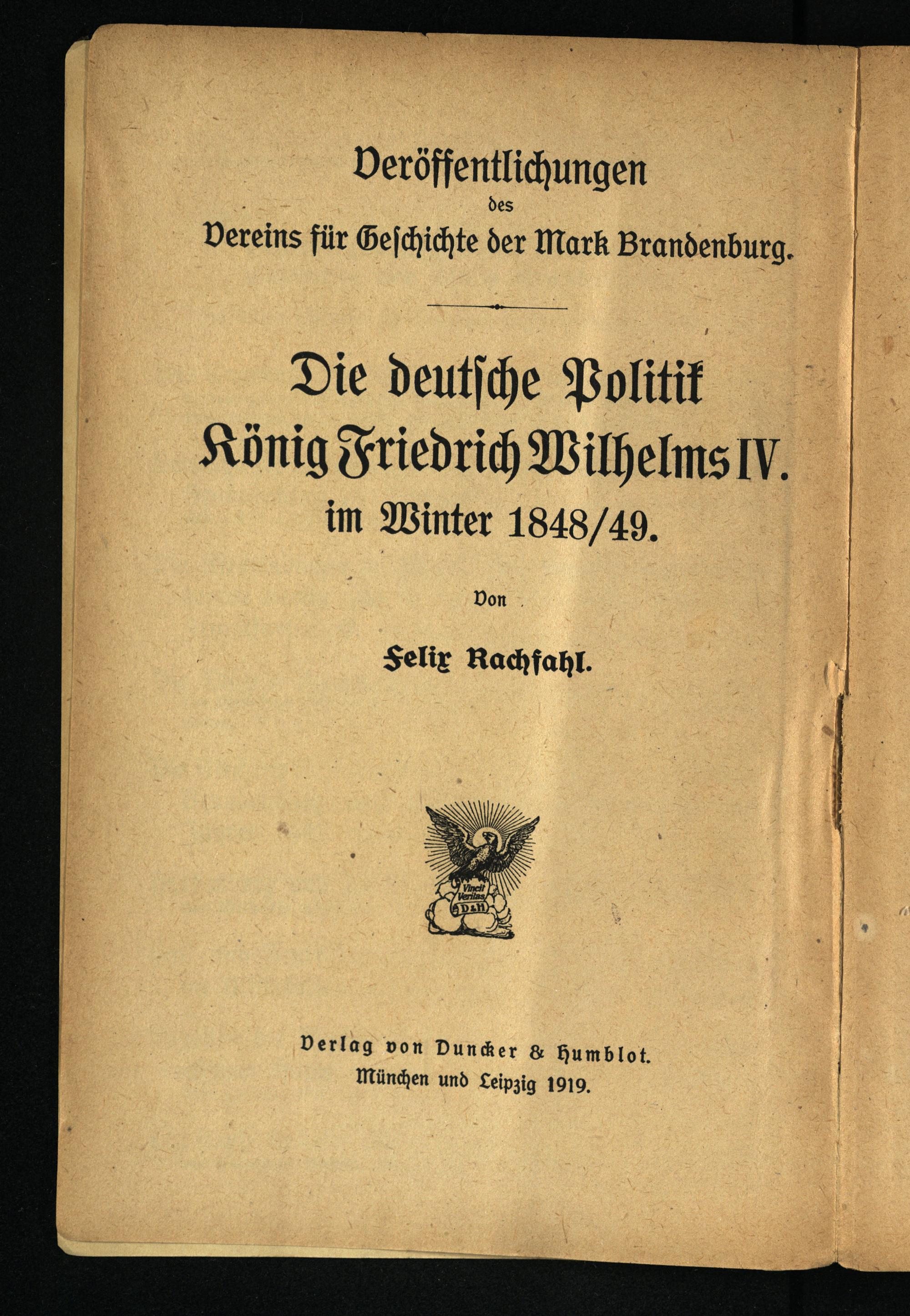 Die deutsche Politik König Friedrich Wilhelms IV. im Winter 1848/49 / von Felix Rachfahl