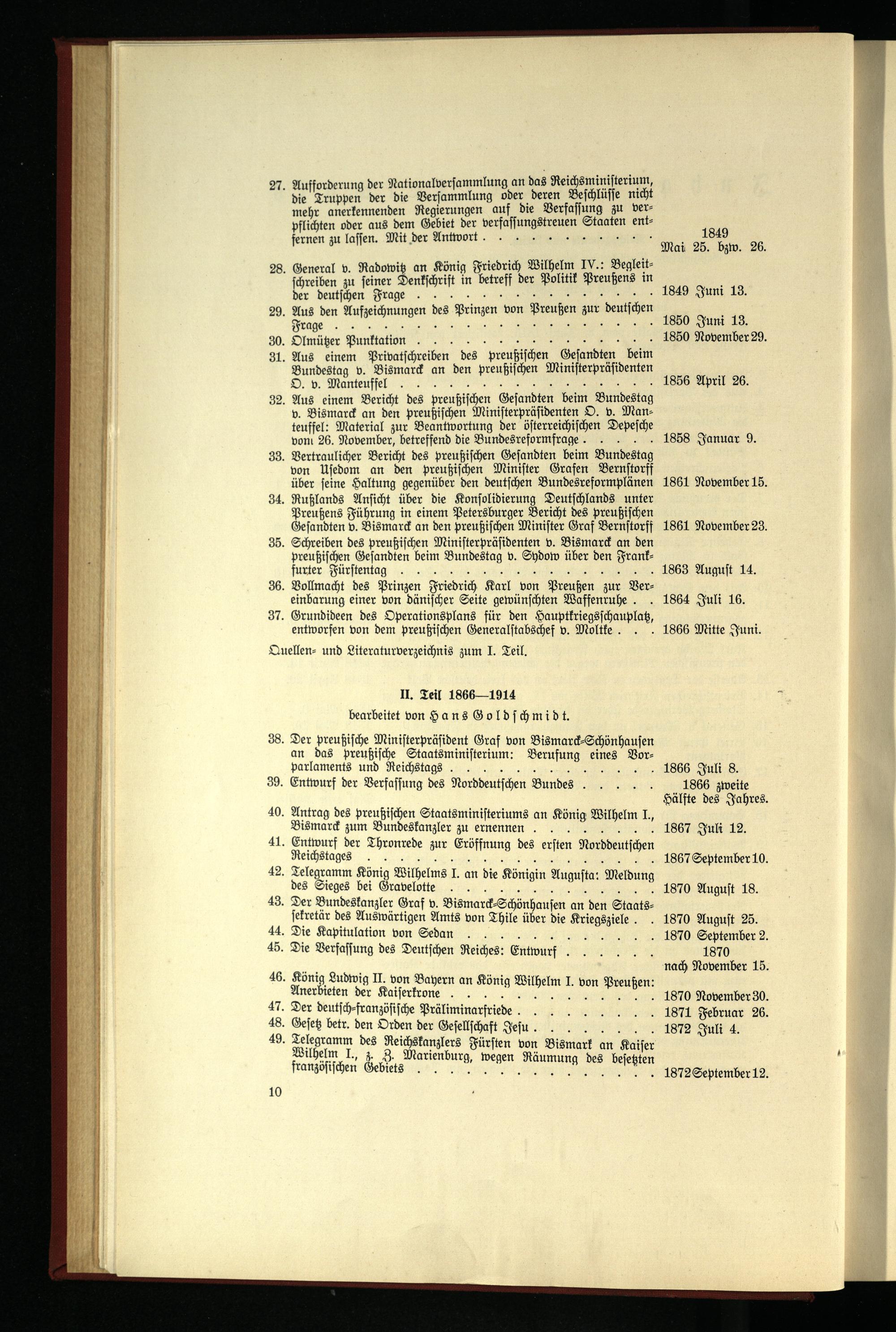 Ein Jahrhundert deutscher Geschichte : Reichsgedanke und Reich 1815 - 1919 ; 150 faksimilierte Urkunden und Aktenstücke aus den Beständen vornehmlich der Reichskanzlei, des Auswärtigen Amtes, des Reichsministeriums des Innern, des Preußischen Ministeriums für Wissenschaft, Kunst und Volksbildung und anderer Reichs- und Preußischer Ministerien, des Reichsarchivs, des Preußischen Geheimen Staatsarchivs und des Hausarchivs, sowie der Archive des Deutschen Bundes und der Deutschen Nationalversammlung zu Frankfurt a. M. / hrsg. von Hans Goldschmidt; Hans Kaiser; Hans Thimme. Mit e. geschichtl. Einf. von Ernst Müsebeck