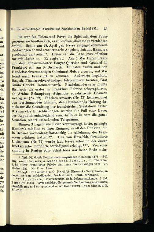 Bismarck und die Friedensunterhändler 1871 : die deutsch-französischen Friedensverhandlungen zu Brüssel und Frankfurt März - Dezember 1871 / bearb. von Hans Goldschmidt