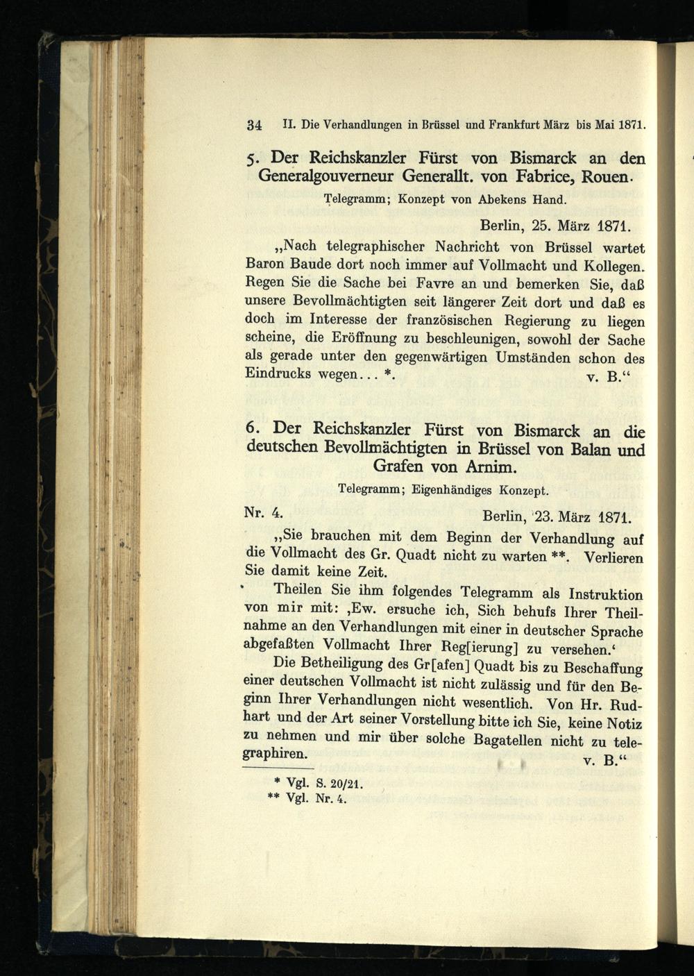 II. Die Verhandlungen in Brüssel und Frankfurt März bis Mai 1871.