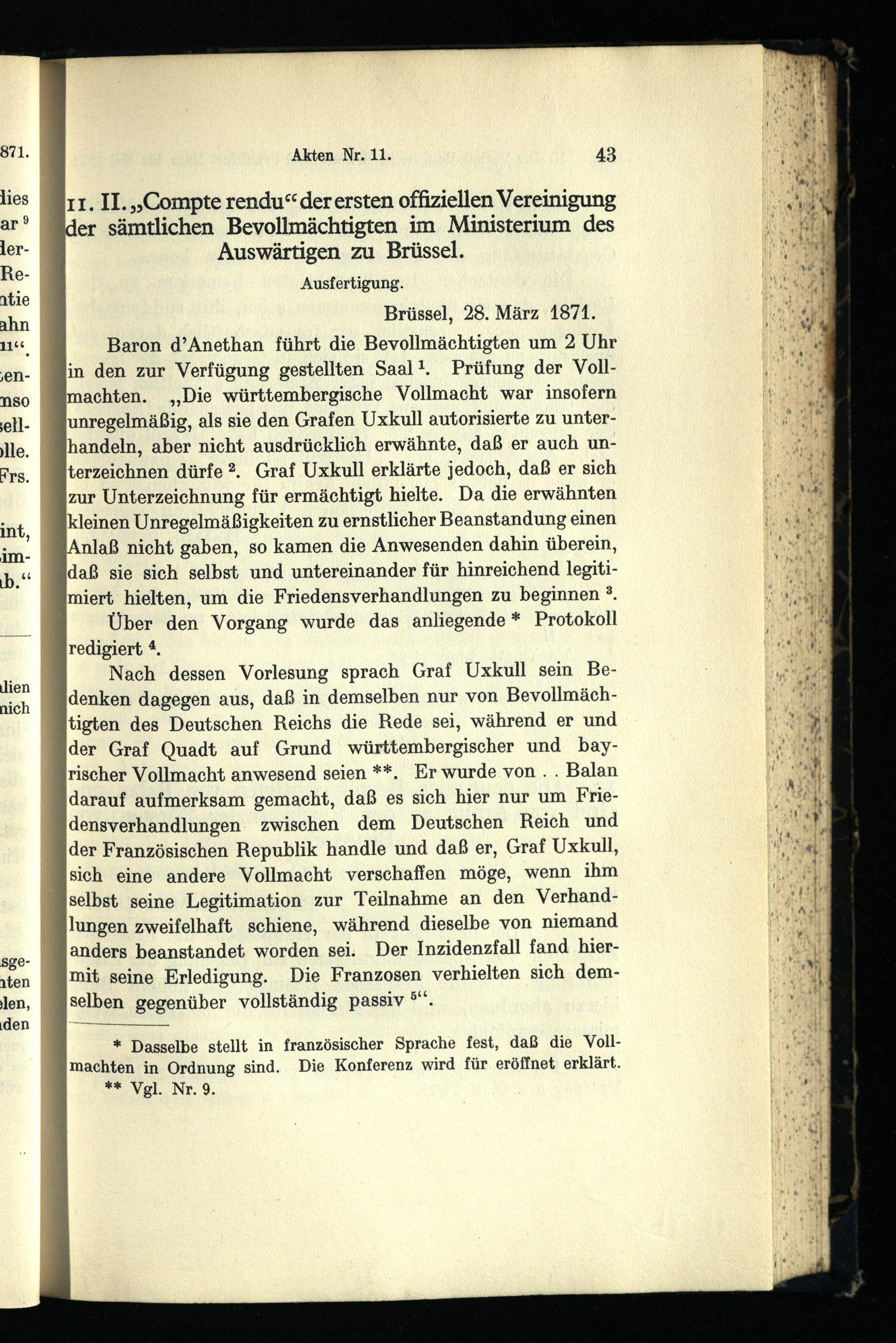 II. Die Verhandlungen in Brüssel und Frankfurt März bis Mai 1871.