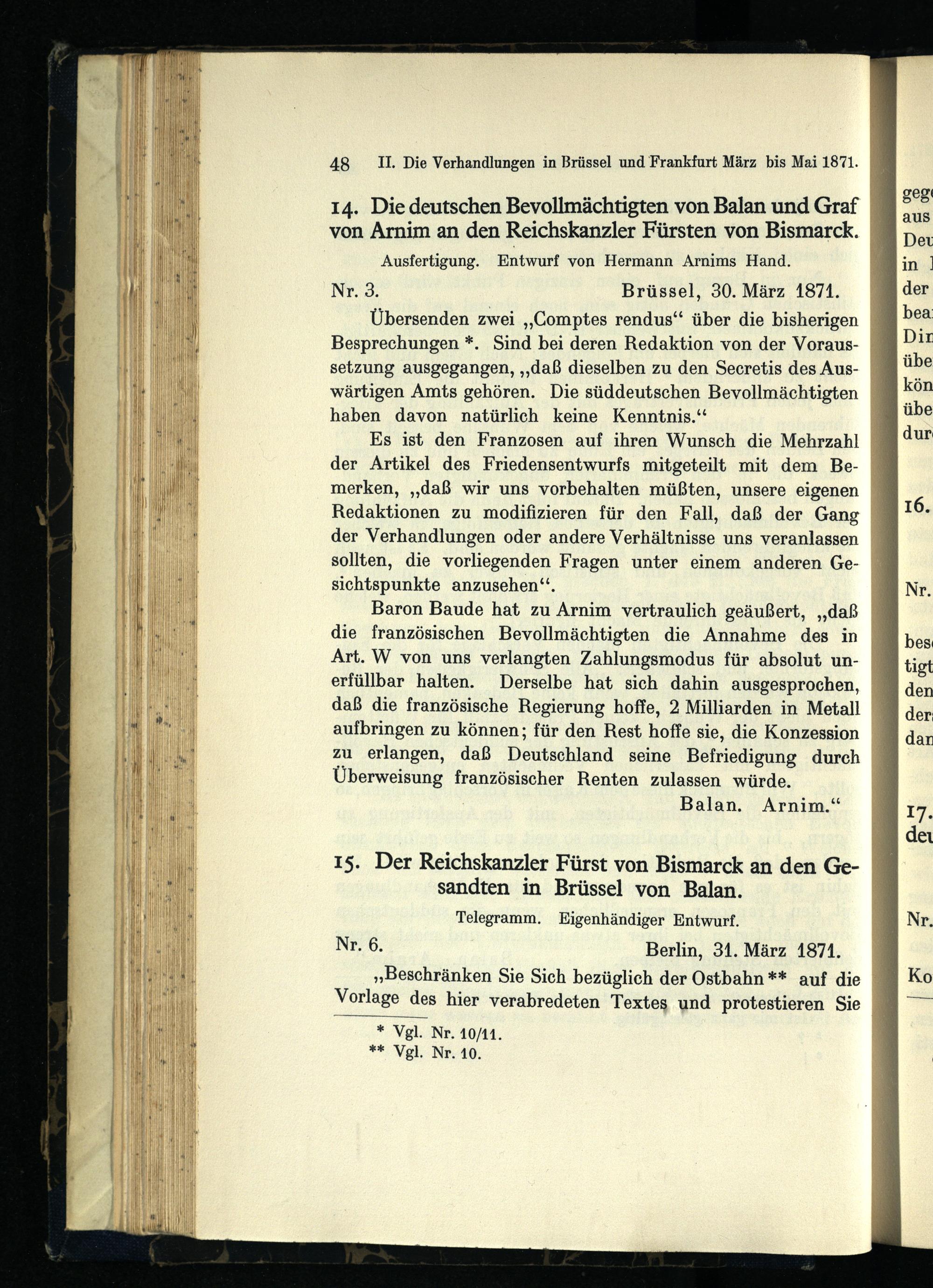 II. Die Verhandlungen in Brüssel und Frankfurt März bis Mai 1871.