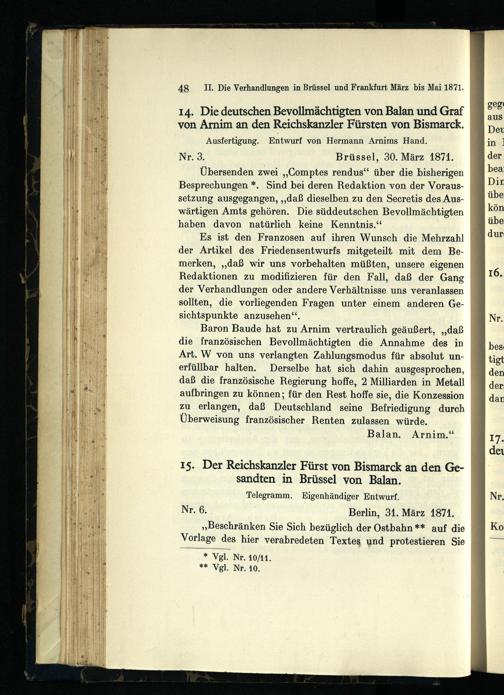 Bismarck und die Friedensunterhändler 1871 : die deutsch-französischen Friedensverhandlungen zu Brüssel und Frankfurt März - Dezember 1871 / bearb. von Hans Goldschmidt