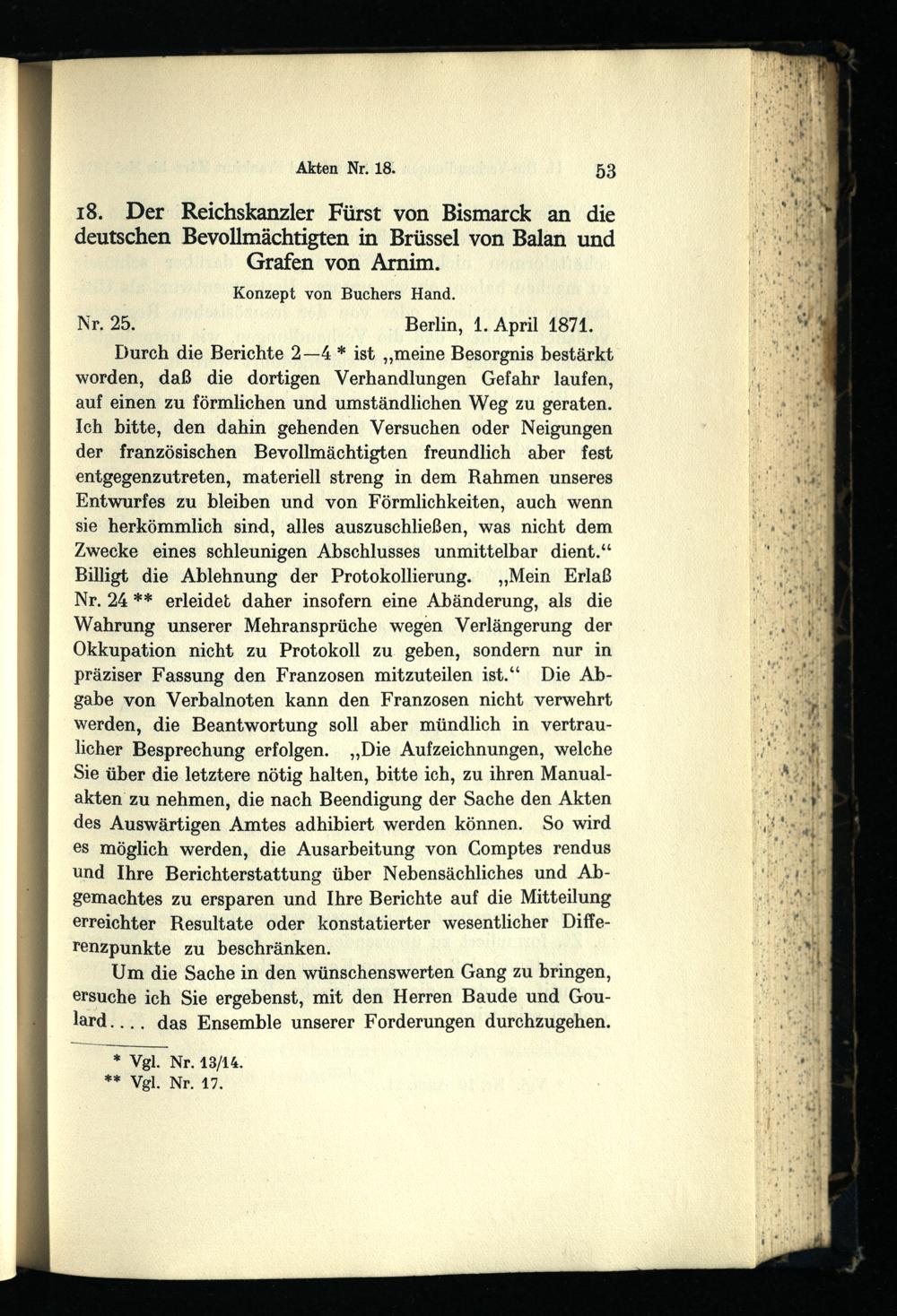 Bismarck und die Friedensunterhändler 1871 : die deutsch-französischen Friedensverhandlungen zu Brüssel und Frankfurt März - Dezember 1871 / bearb. von Hans Goldschmidt