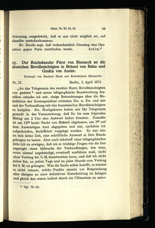 Bismarck und die Friedensunterhändler 1871 : die deutsch-französischen Friedensverhandlungen zu Brüssel und Frankfurt März - Dezember 1871 / bearb. von Hans Goldschmidt