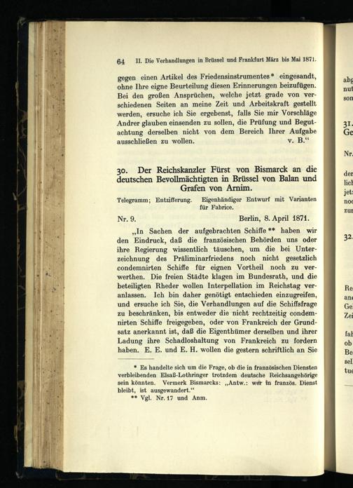 Bismarck und die Friedensunterhändler 1871 : die deutsch-französischen Friedensverhandlungen zu Brüssel und Frankfurt März - Dezember 1871 / bearb. von Hans Goldschmidt