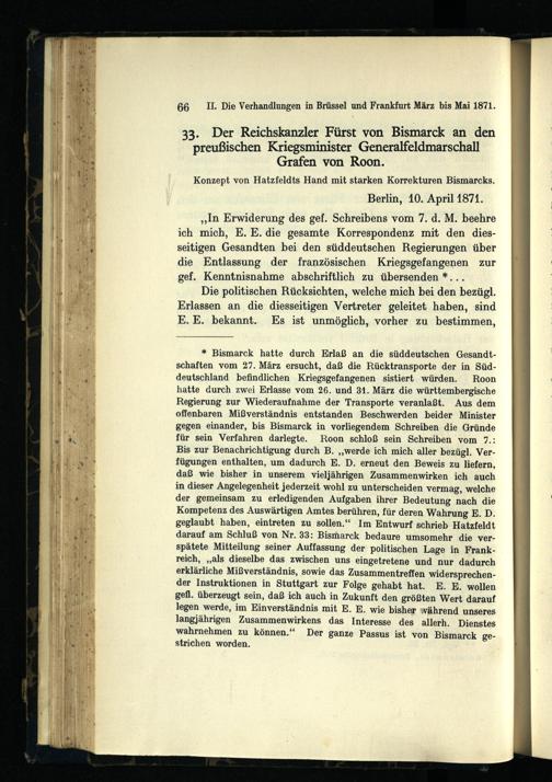 Bismarck und die Friedensunterhändler 1871 : die deutsch-französischen Friedensverhandlungen zu Brüssel und Frankfurt März - Dezember 1871 / bearb. von Hans Goldschmidt