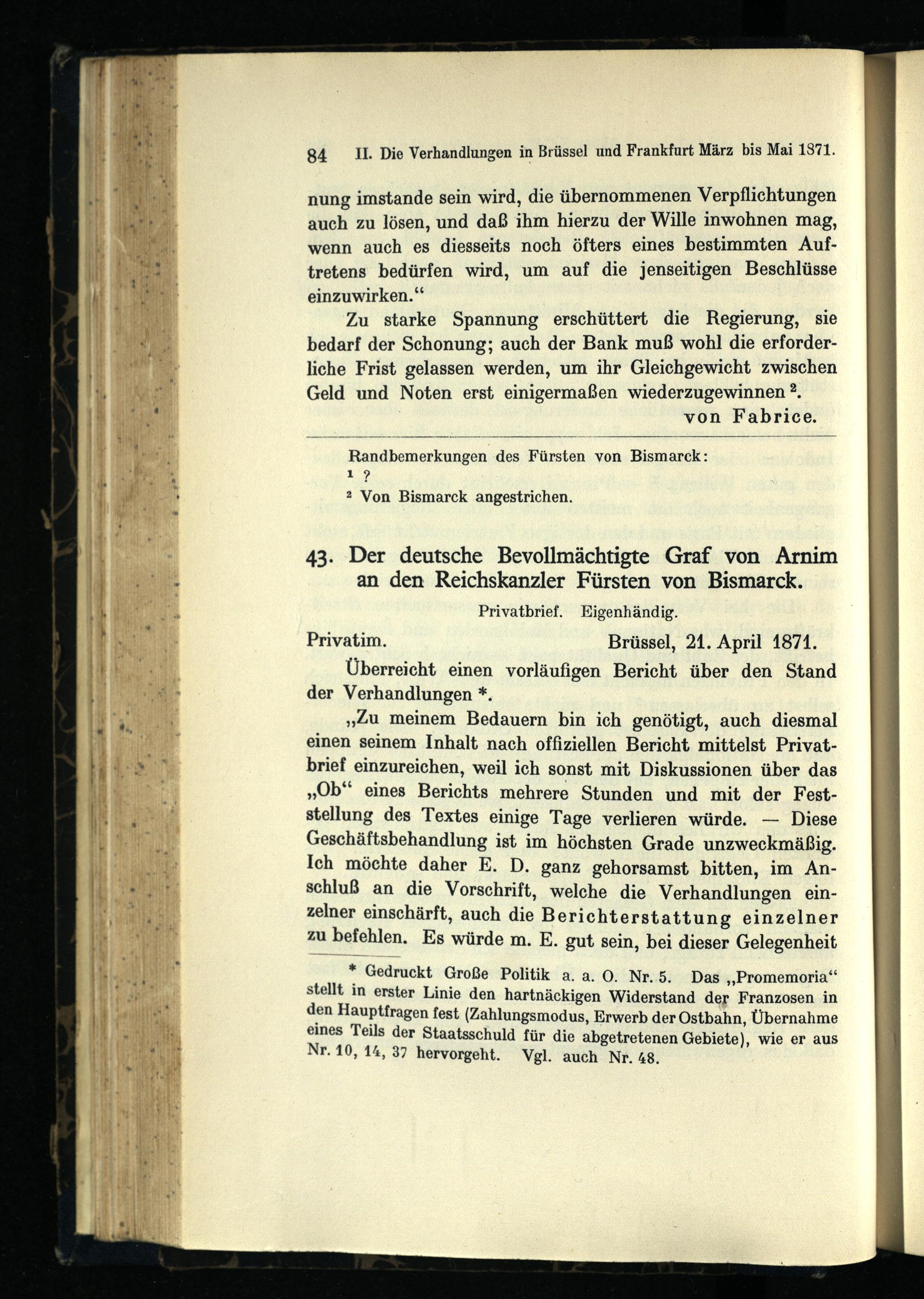 Bismarck und die Friedensunterhändler 1871 : die deutsch-französischen Friedensverhandlungen zu Brüssel und Frankfurt März - Dezember 1871 / bearb. von Hans Goldschmidt