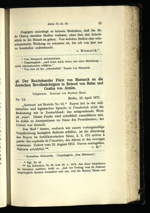 Bismarck und die Friedensunterhändler 1871 : die deutsch-französischen Friedensverhandlungen zu Brüssel und Frankfurt März - Dezember 1871 / bearb. von Hans Goldschmidt