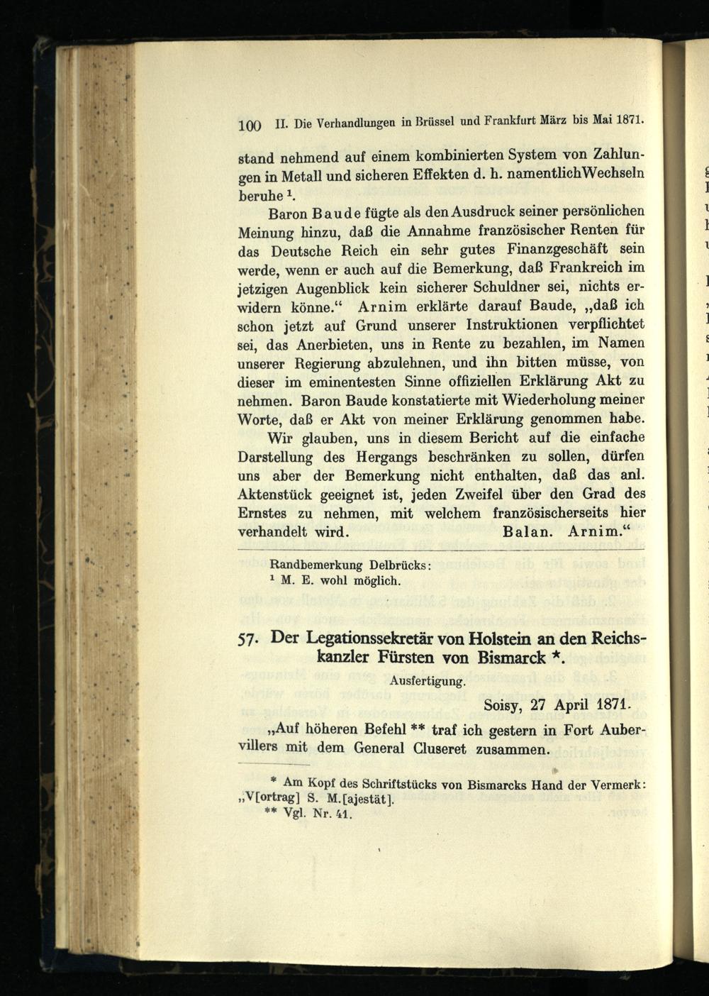 Bismarck und die Friedensunterhändler 1871 : die deutsch-französischen Friedensverhandlungen zu Brüssel und Frankfurt März - Dezember 1871 / bearb. von Hans Goldschmidt