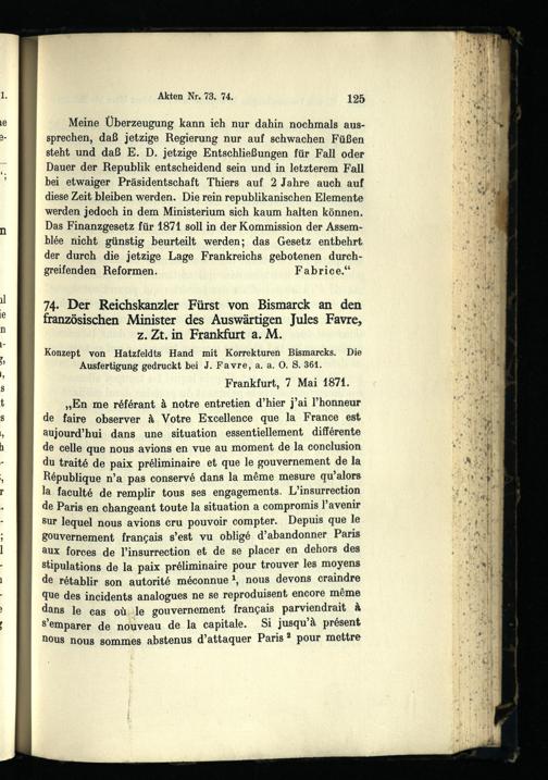 Bismarck und die Friedensunterhändler 1871 : die deutsch-französischen Friedensverhandlungen zu Brüssel und Frankfurt März - Dezember 1871 / bearb. von Hans Goldschmidt