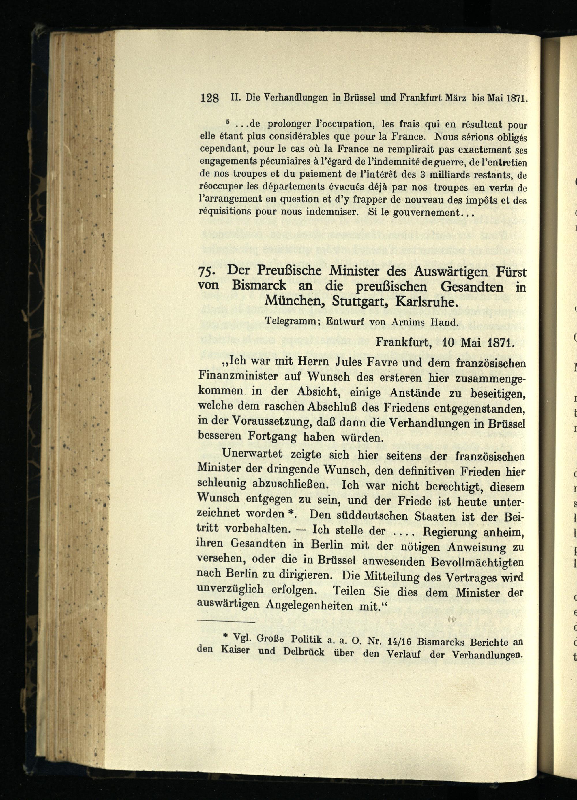 Bismarck und die Friedensunterhändler 1871 : die deutsch-französischen Friedensverhandlungen zu Brüssel und Frankfurt März - Dezember 1871 / bearb. von Hans Goldschmidt