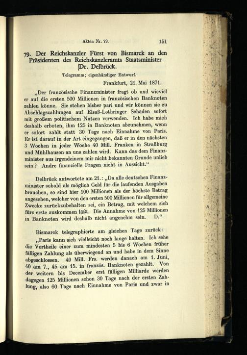 Bismarck und die Friedensunterhändler 1871 : die deutsch-französischen Friedensverhandlungen zu Brüssel und Frankfurt März - Dezember 1871 / bearb. von Hans Goldschmidt