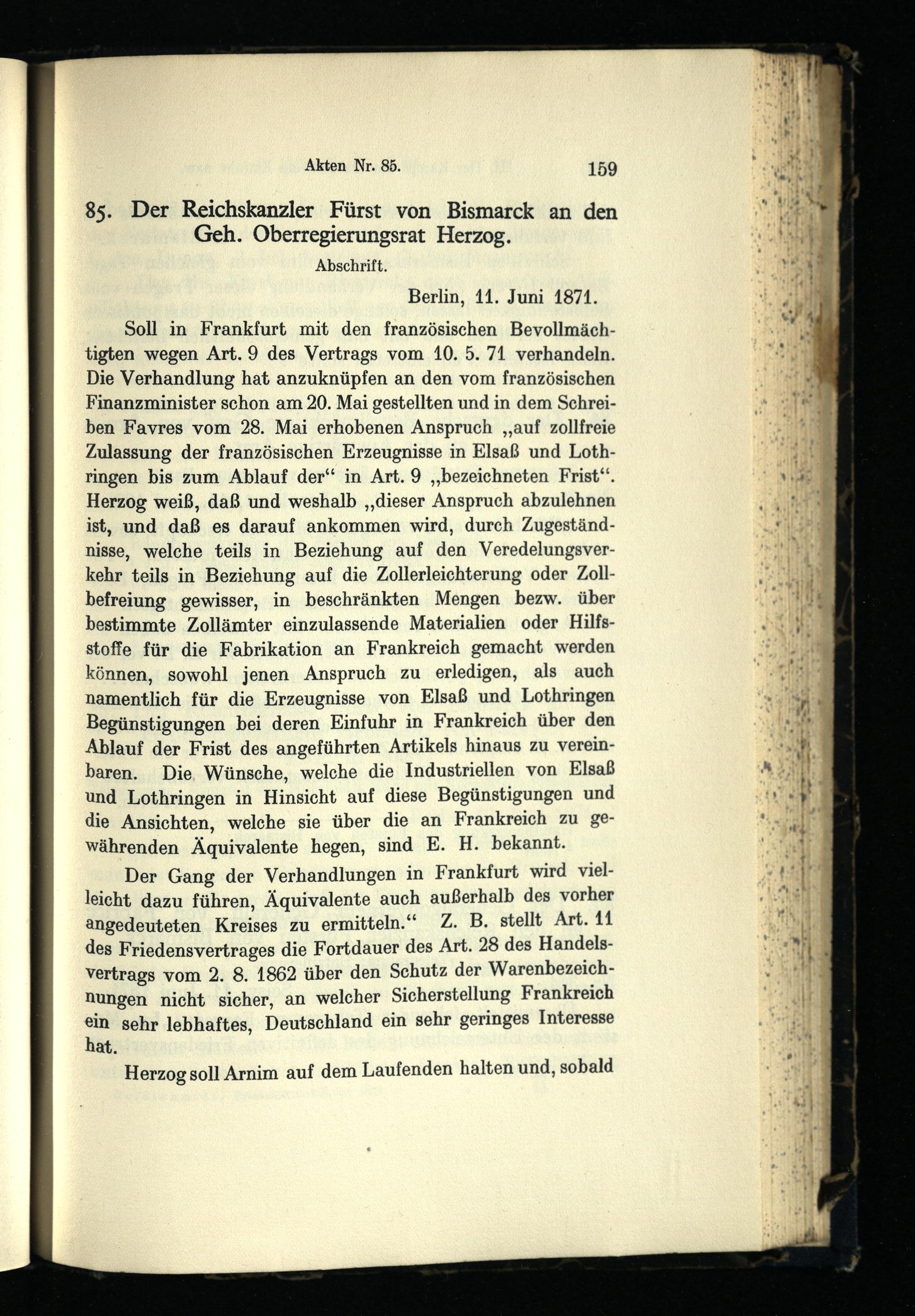 III. Der Kampf um die zollfreie Einfuhr und die Räumungsfrage Juli-Oktober 1871.