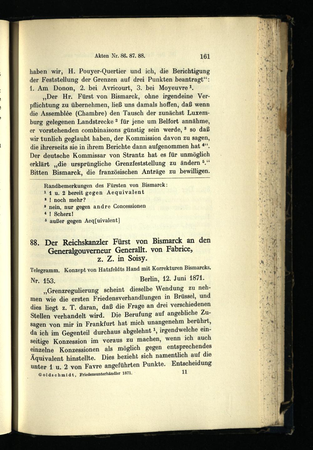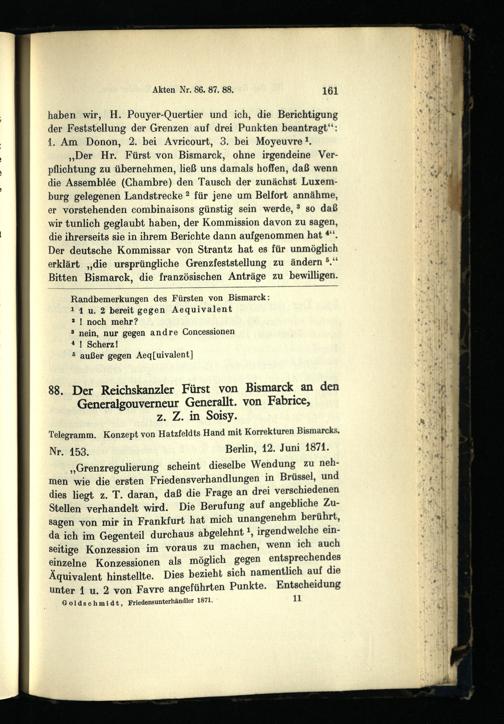 Bismarck und die Friedensunterhändler 1871 : die deutsch-französischen Friedensverhandlungen zu Brüssel und Frankfurt März - Dezember 1871 / bearb. von Hans Goldschmidt