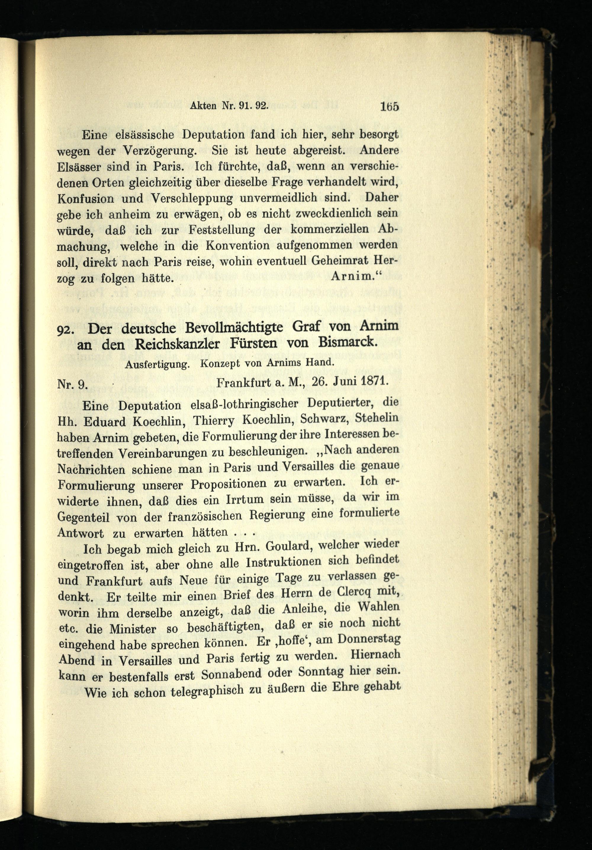 Bismarck und die Friedensunterhändler 1871 : die deutsch-französischen Friedensverhandlungen zu Brüssel und Frankfurt März - Dezember 1871 / bearb. von Hans Goldschmidt