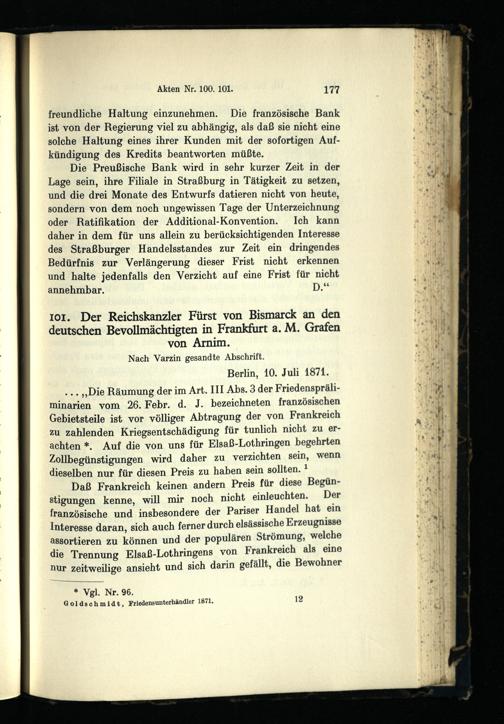 Bismarck und die Friedensunterhändler 1871 : die deutsch-französischen Friedensverhandlungen zu Brüssel und Frankfurt März - Dezember 1871 / bearb. von Hans Goldschmidt