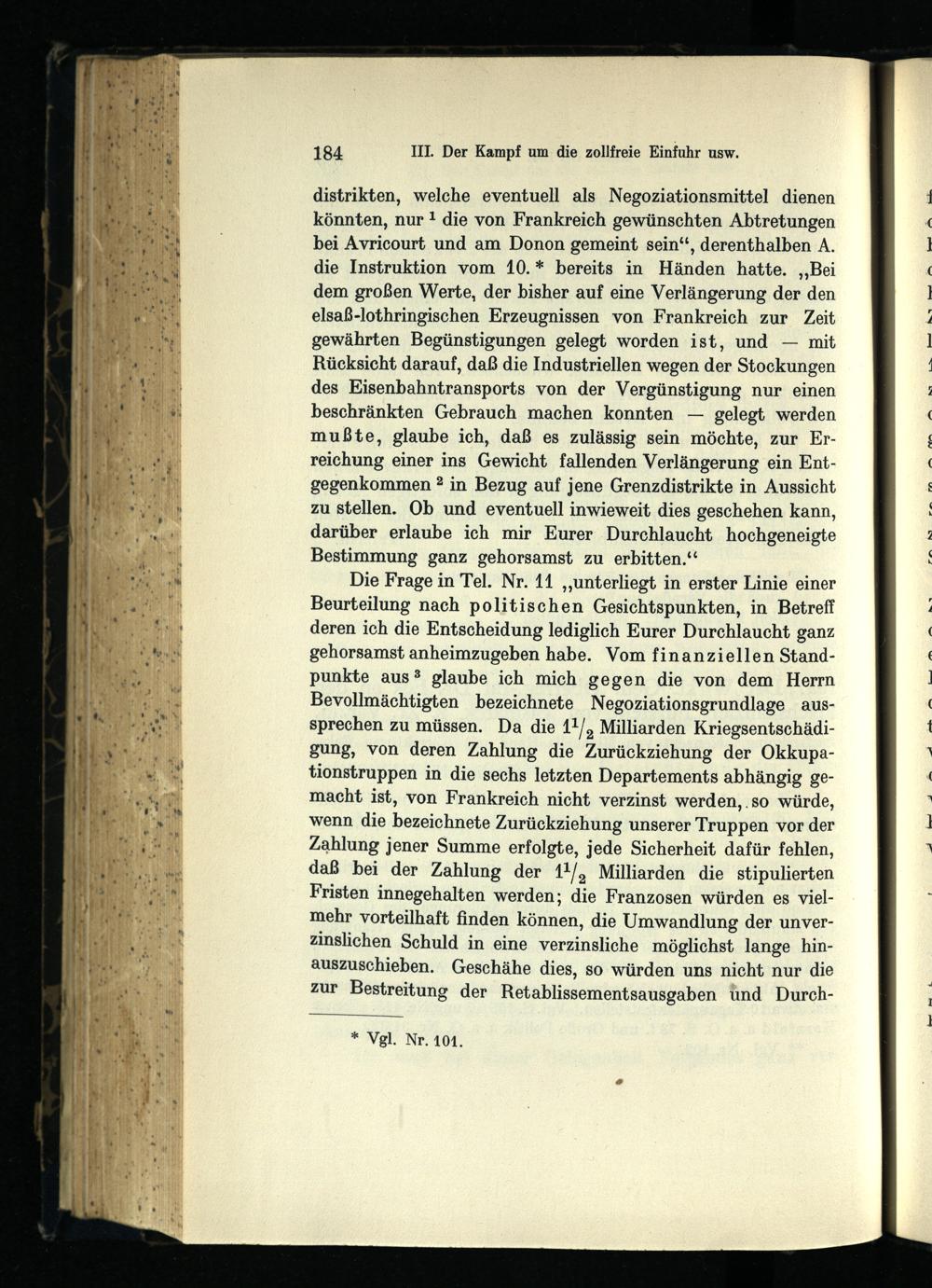 III. Der Kampf um die zollfreie Einfuhr und die Räumungsfrage Juli-Oktober 1871.