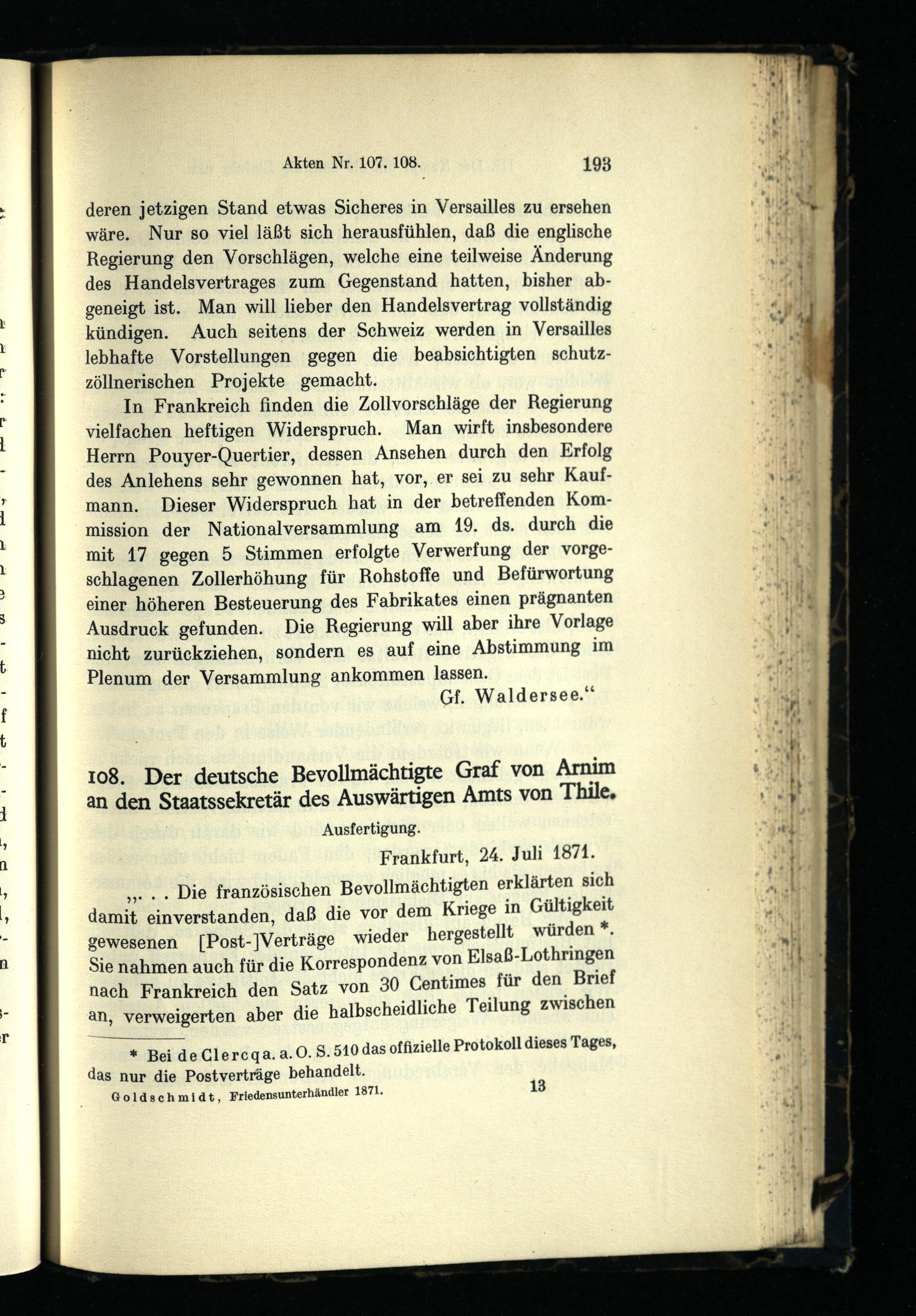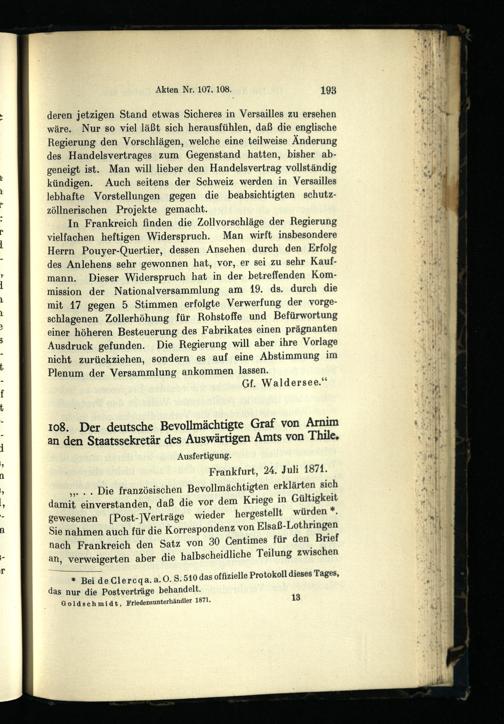 III. Der Kampf um die zollfreie Einfuhr und die Räumungsfrage Juli-Oktober 1871.