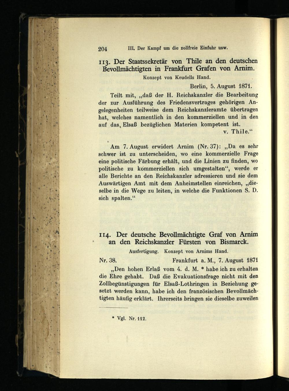 III. Der Kampf um die zollfreie Einfuhr und die Räumungsfrage Juli-Oktober 1871.